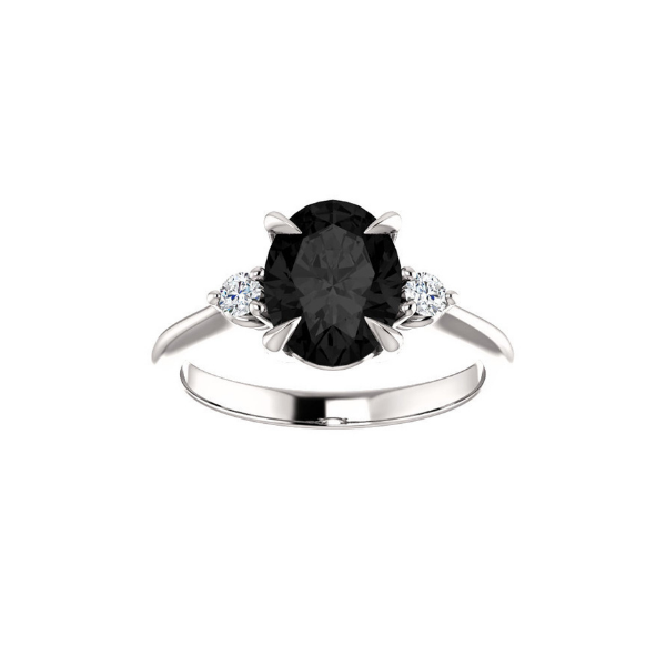 2.20 Carat Oval Shape 3 Stone Black and White Diamond Ring In White Gold