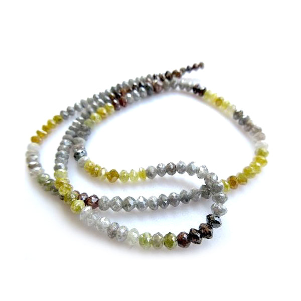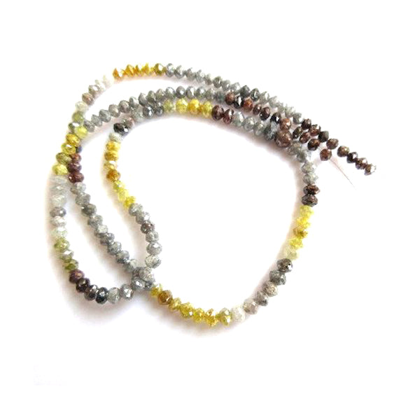We are offering fancy colors of diamond beads in two lot sizes; 2 – 3mm and 3 – 4mm. The lot has beads of all colors that you desire such as black, gray, yellow and, orange. The size of the Fancy color diamond beads necklace is 20 inches and the weight of the diamond bead necklace is 24 carats.