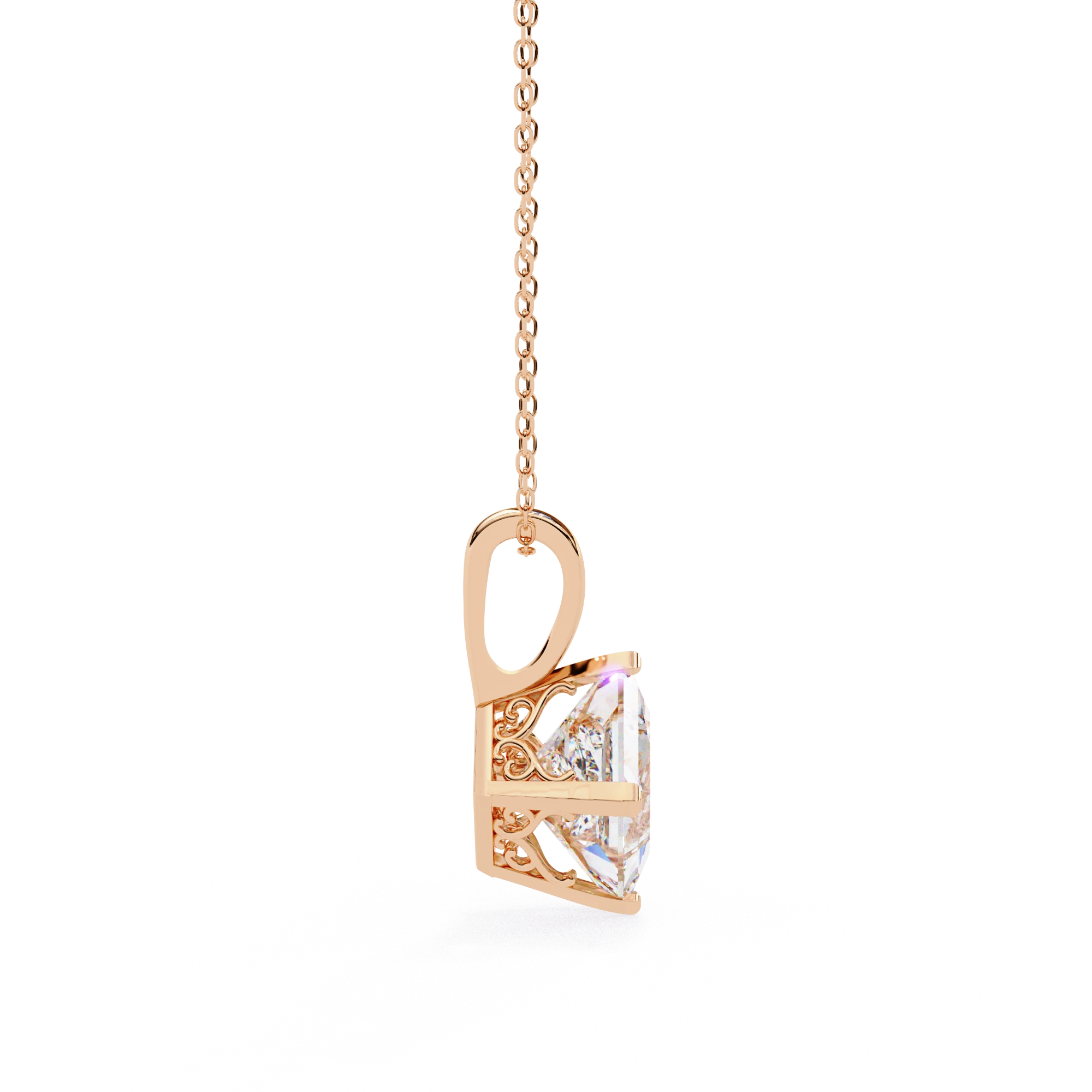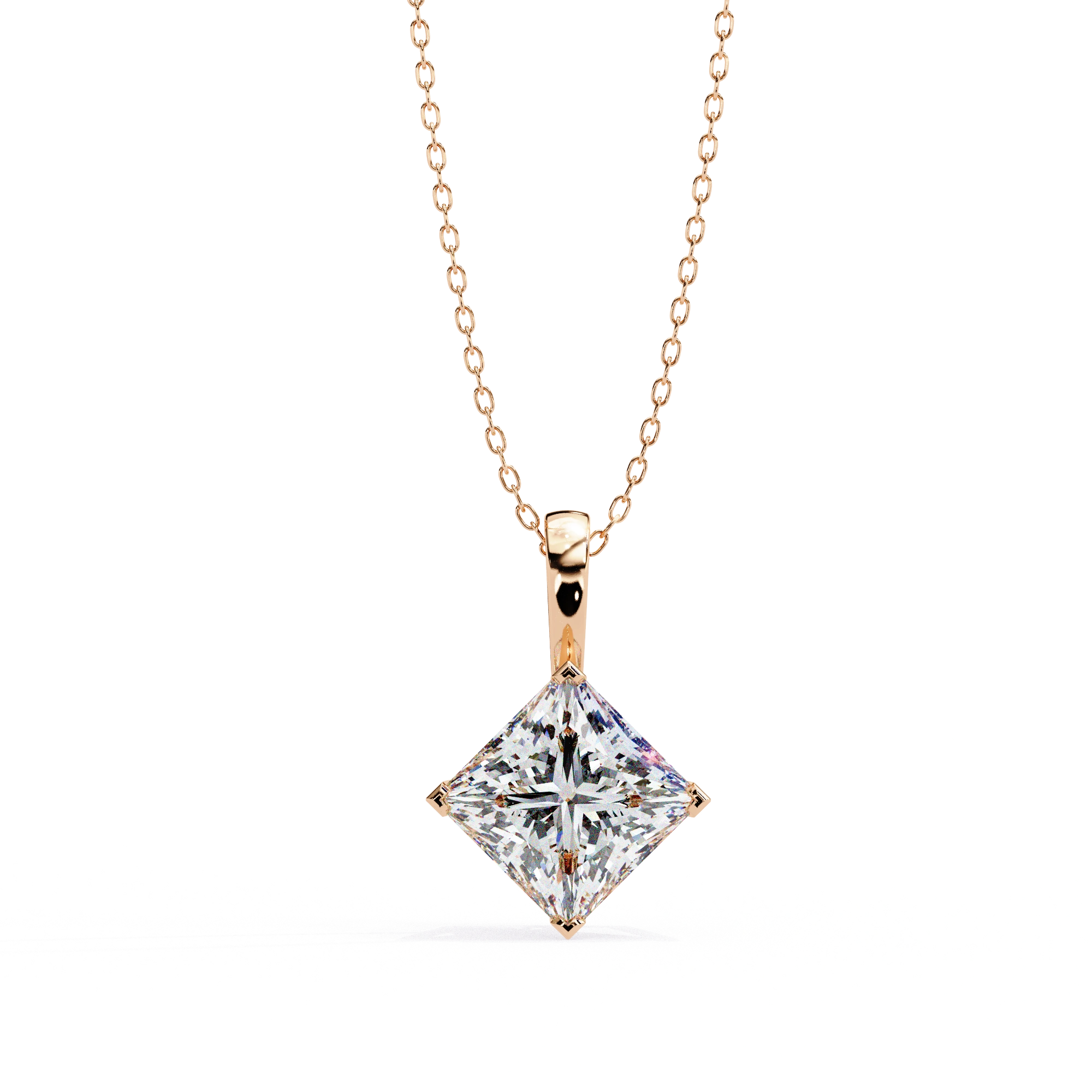Princess Cut Lab Diamond Solitaire Pendant Rose Gold