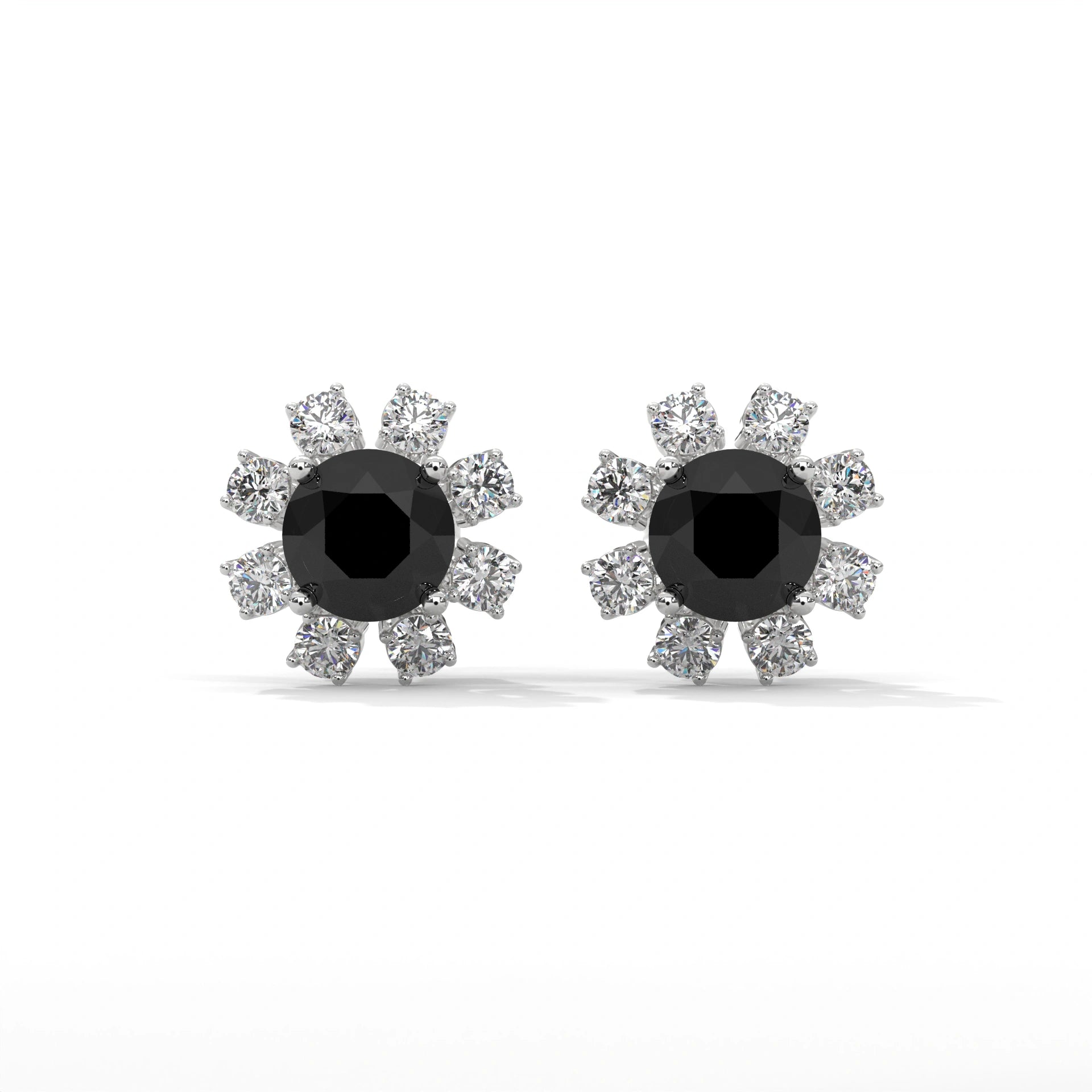1.5 Carat Black Diamond Floral Halo Stud Earrings Screw Back