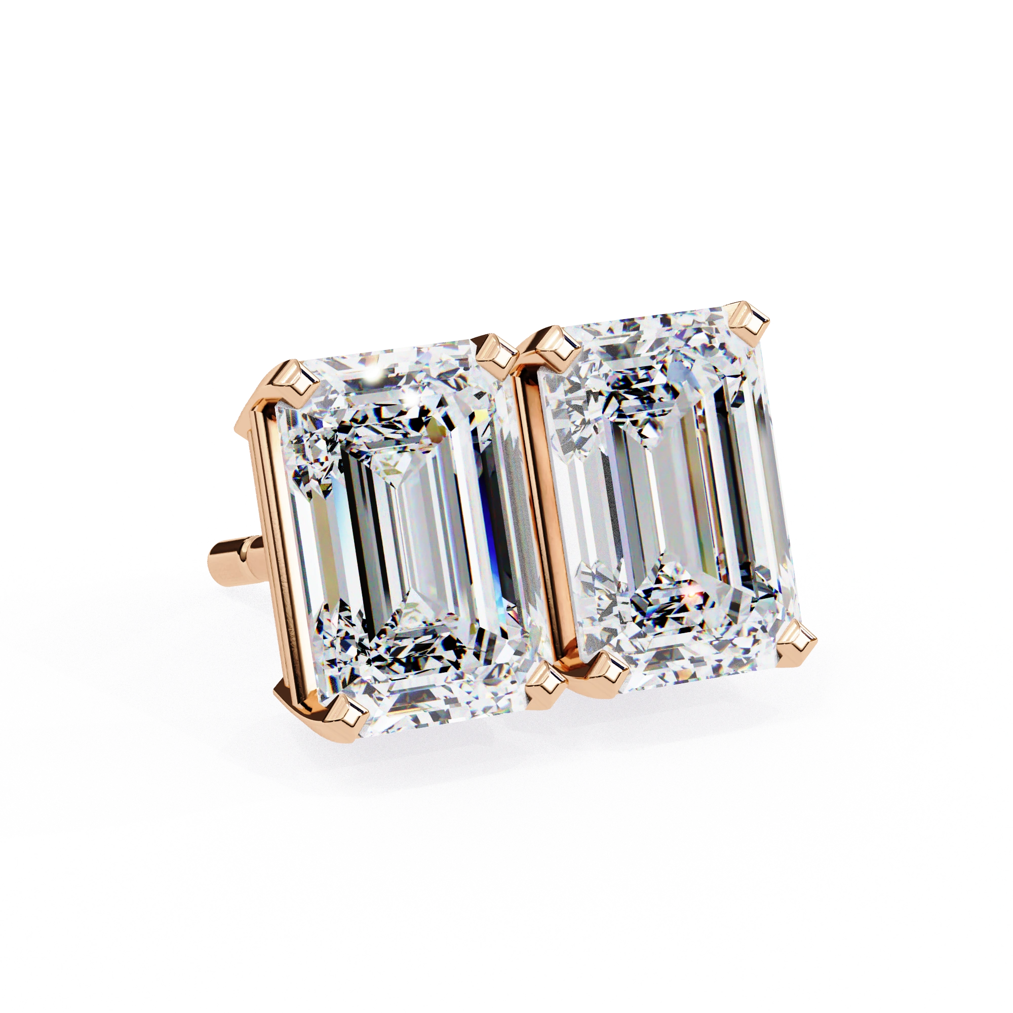 Each Loose Lab Diamond Is Expertly Crafted With Excellent Polish And Symmetry, Maximizing Its Clarity And Light Performance. Secured In A Classic 4-Prong Setting, The Emerald-Cut Diamonds Shine Prominently While The Sturdy Rose Gold Frame Offers Comfort And Everyday Durability. These Mens Stud Earrings Are Built For Regular Wear, Combining Strong Construction With Reliable Sparkle.