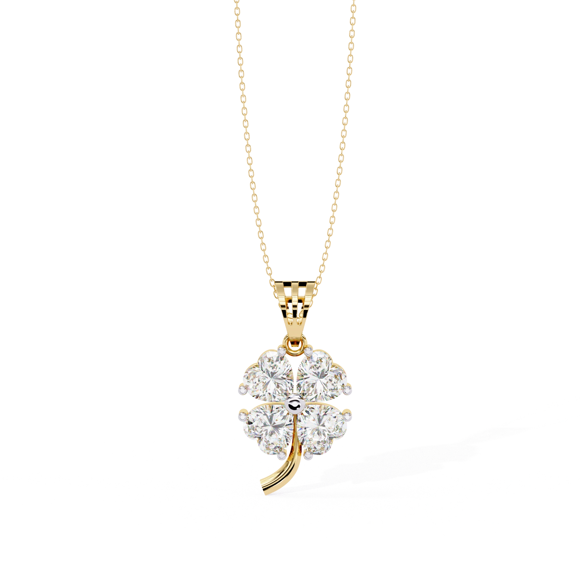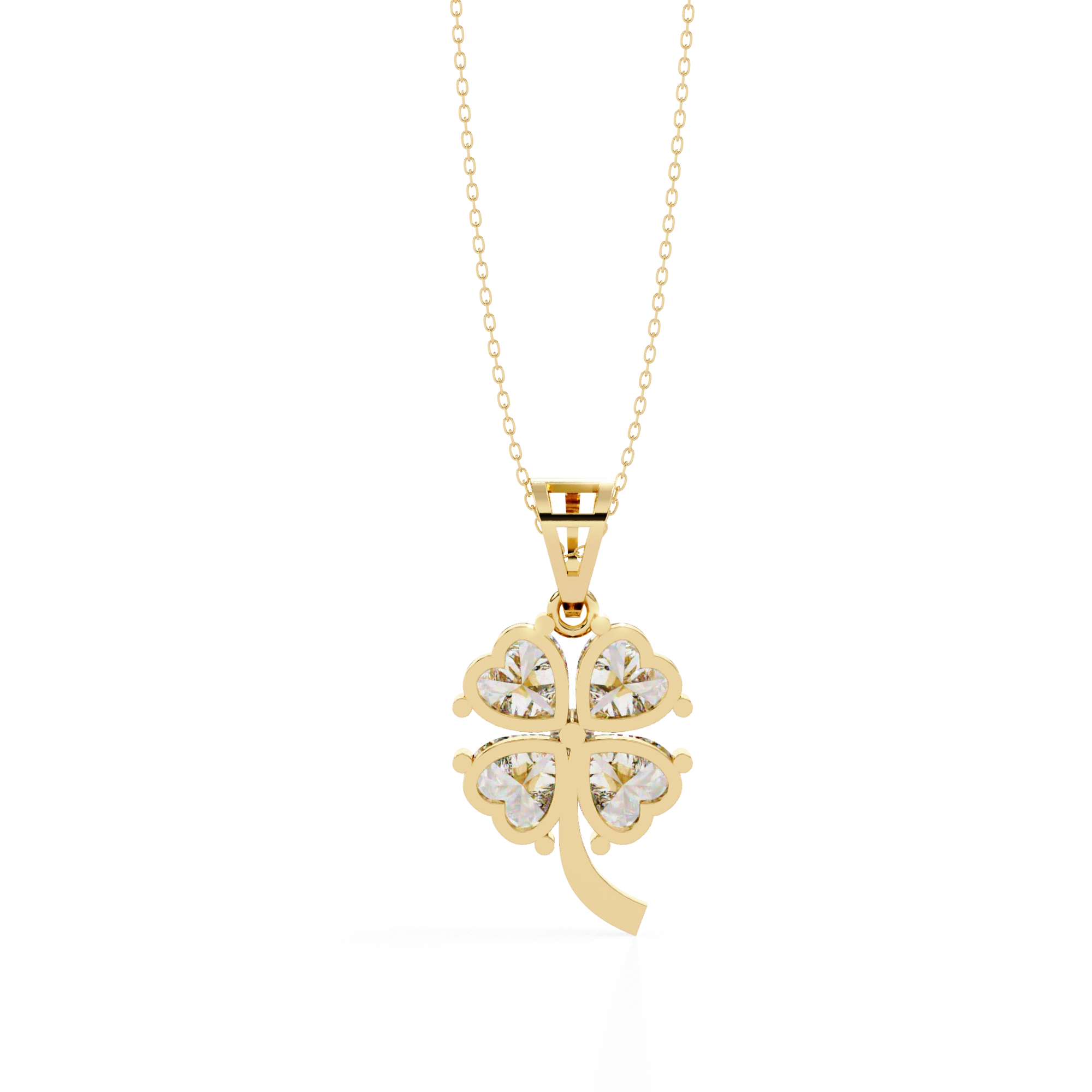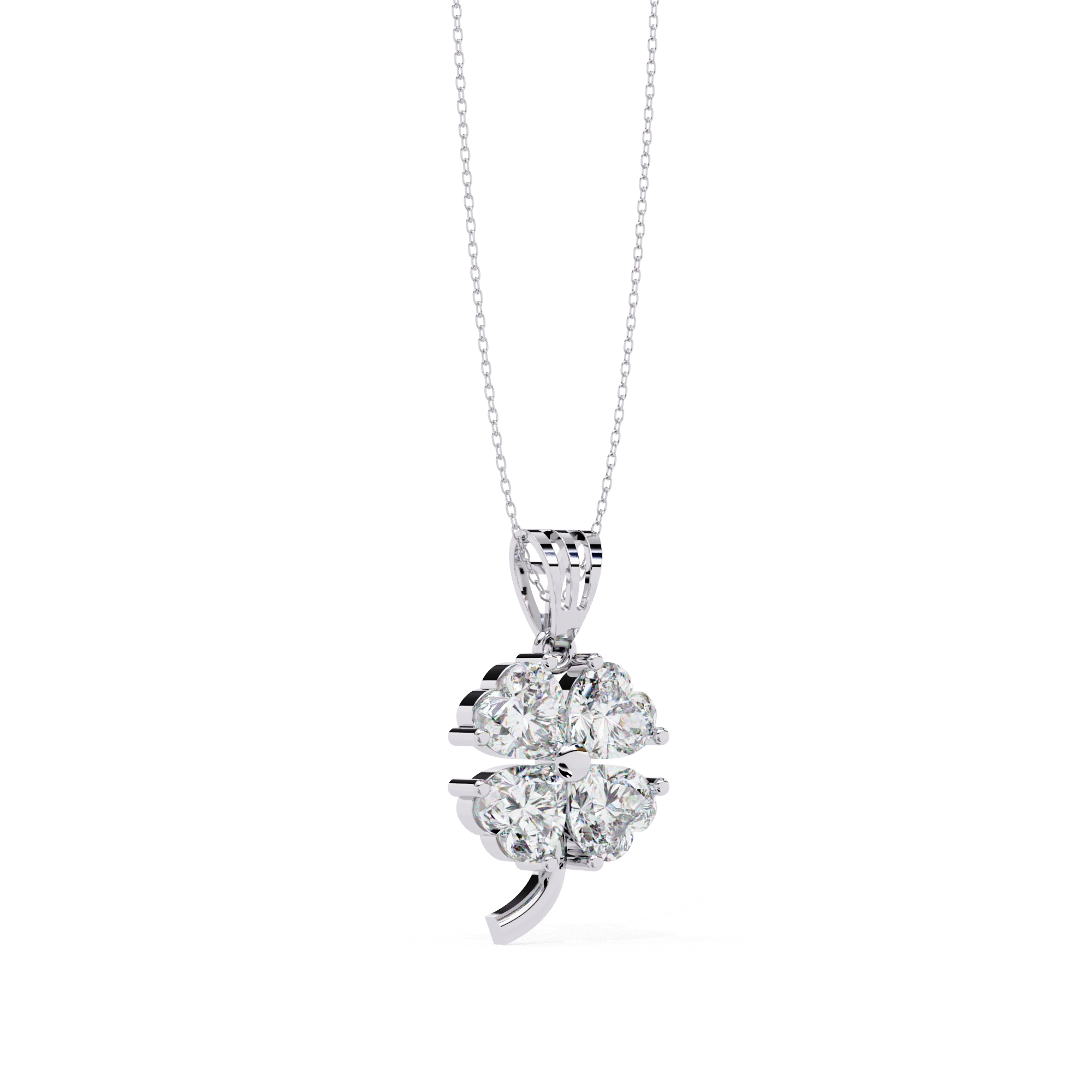 0.72ct Heart Cut Lab Diamond Clover Pendant This Clover pendant features 4 heart shaped diamonds set in a super sweet clover design. Every one of Heart Cut Lab Diamond Pendant is carefully placed so the overall design is balanced and this definitely make an eye candy floral shape.