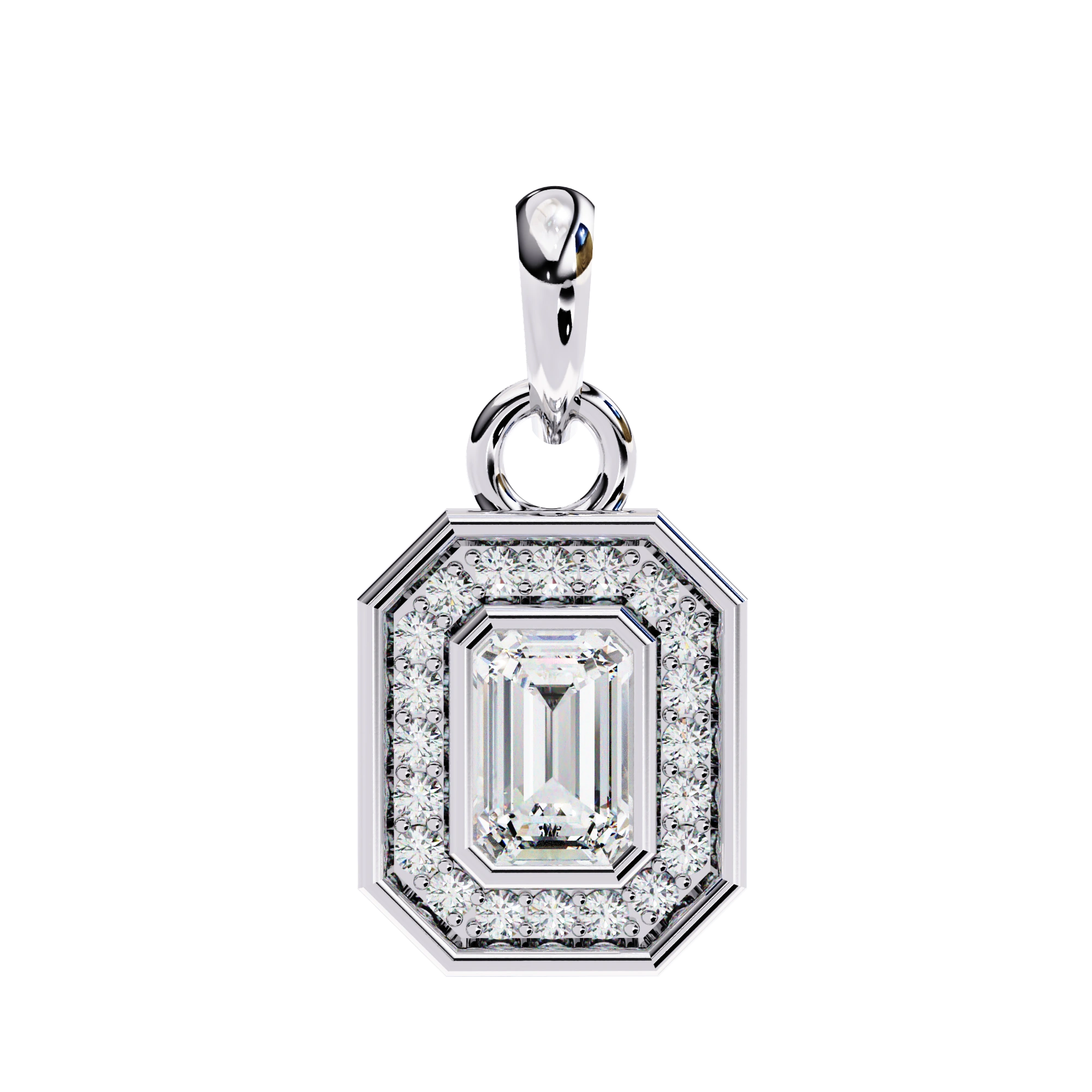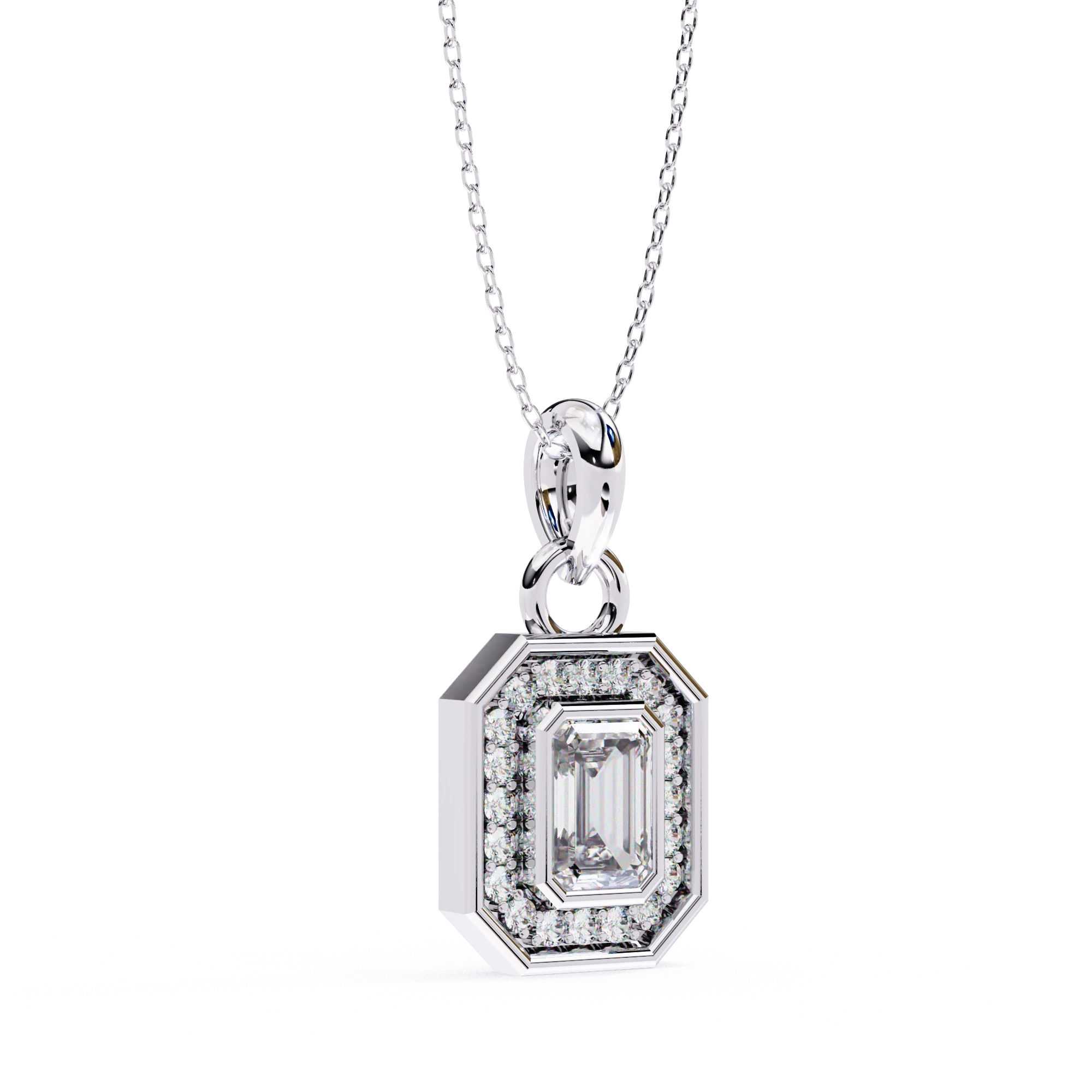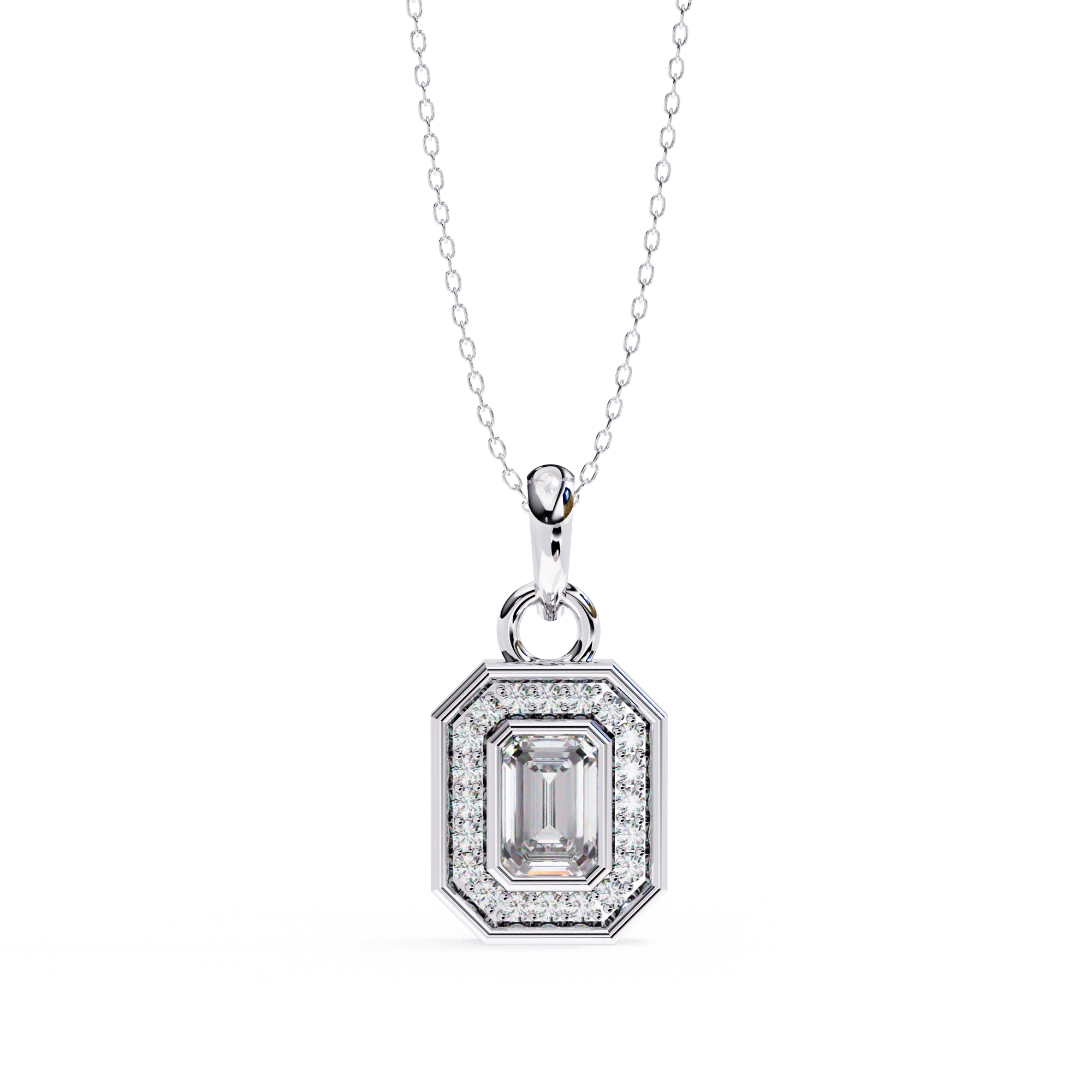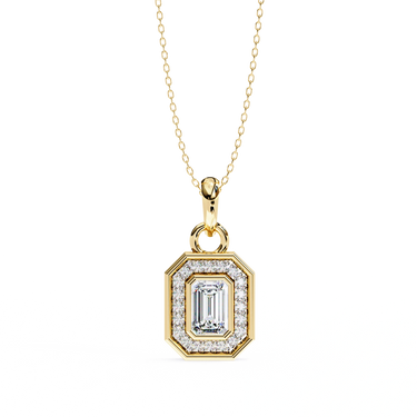 0.95ct Emerald Cut Lab Diamond Halo Pendant White Gold