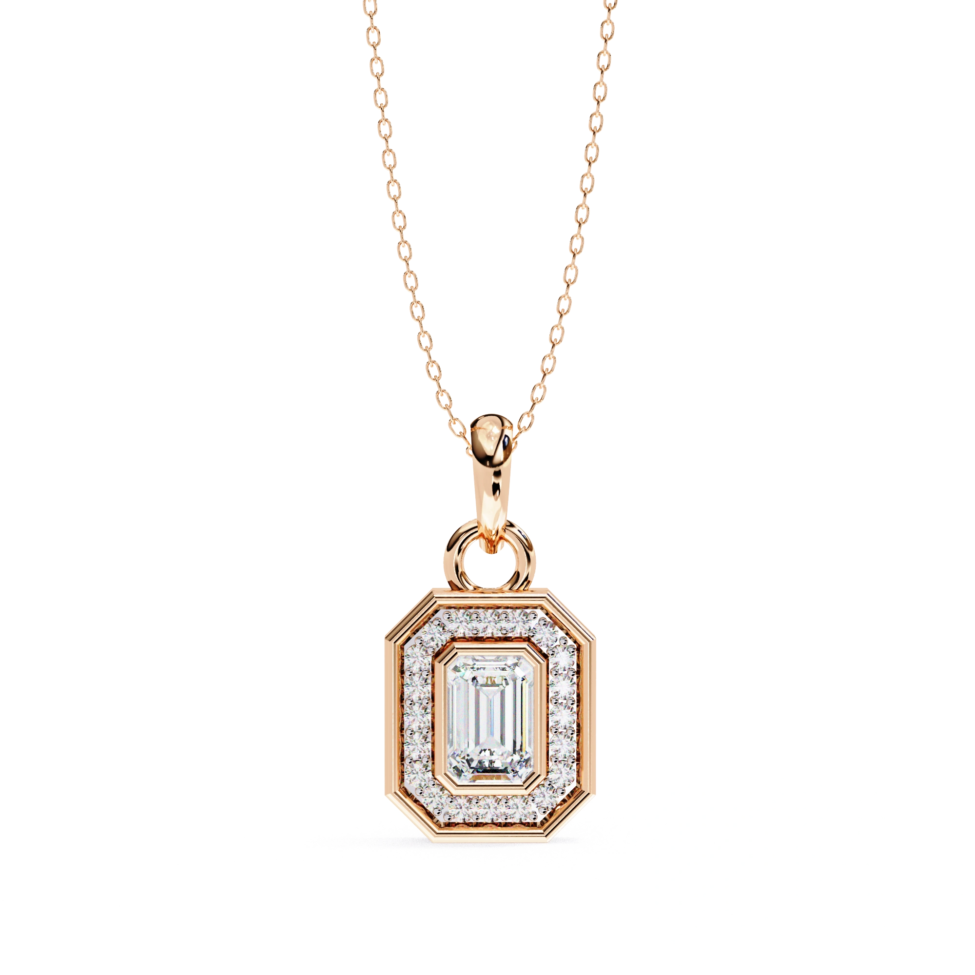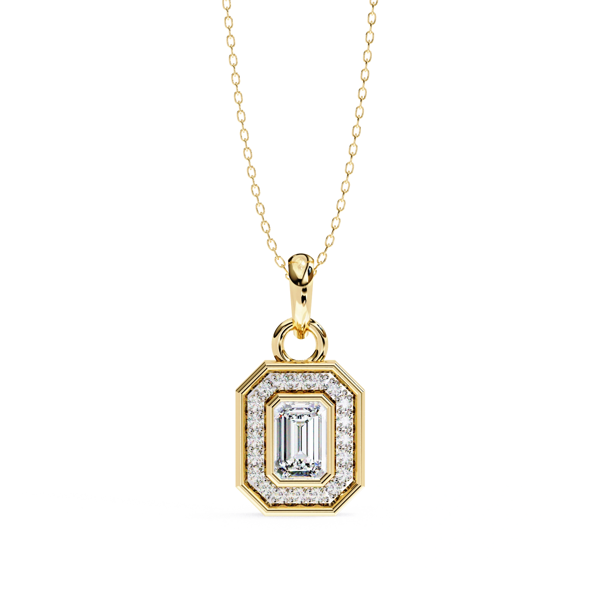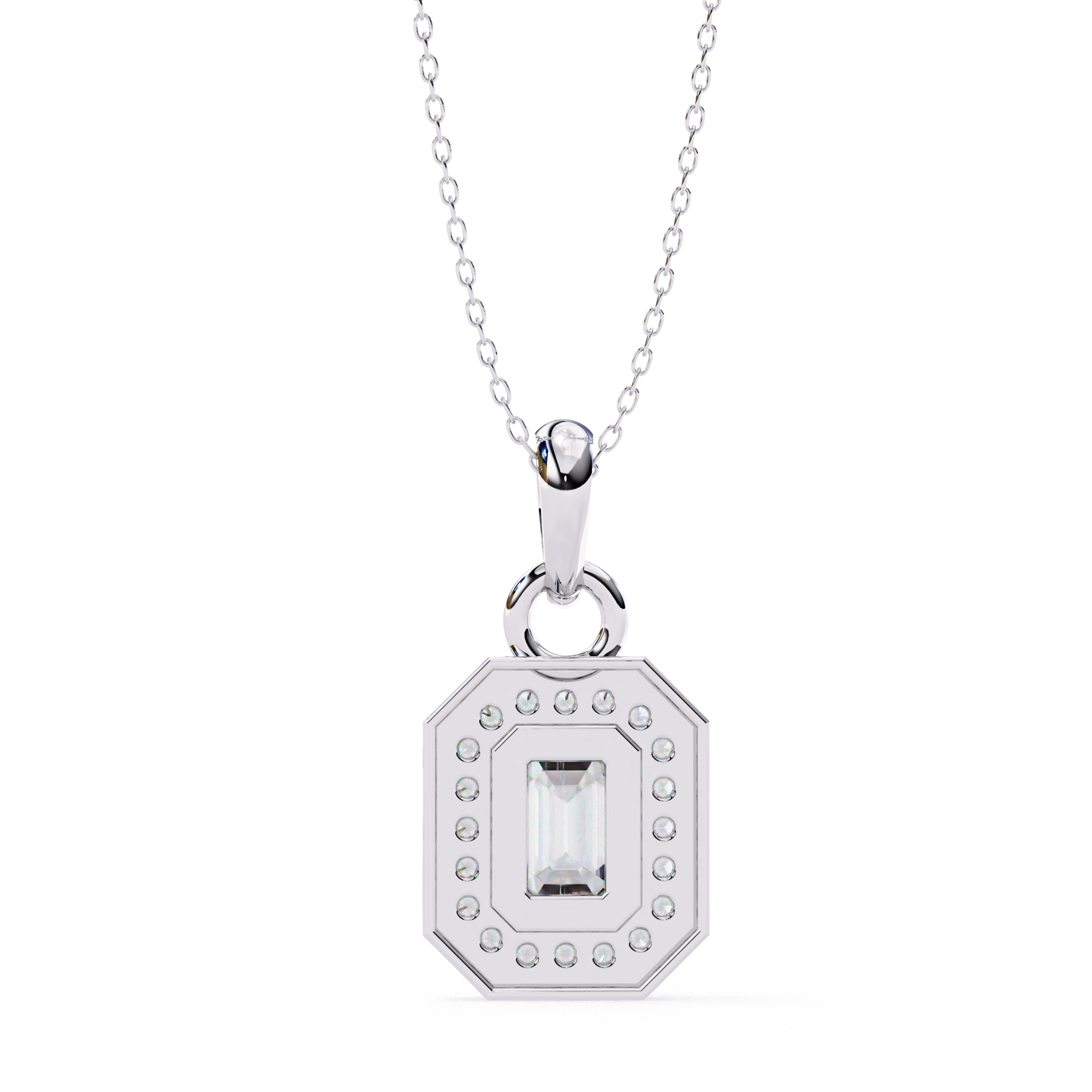 0.95ct Emerald Cut Lab Diamond Halo Pendant White Gold