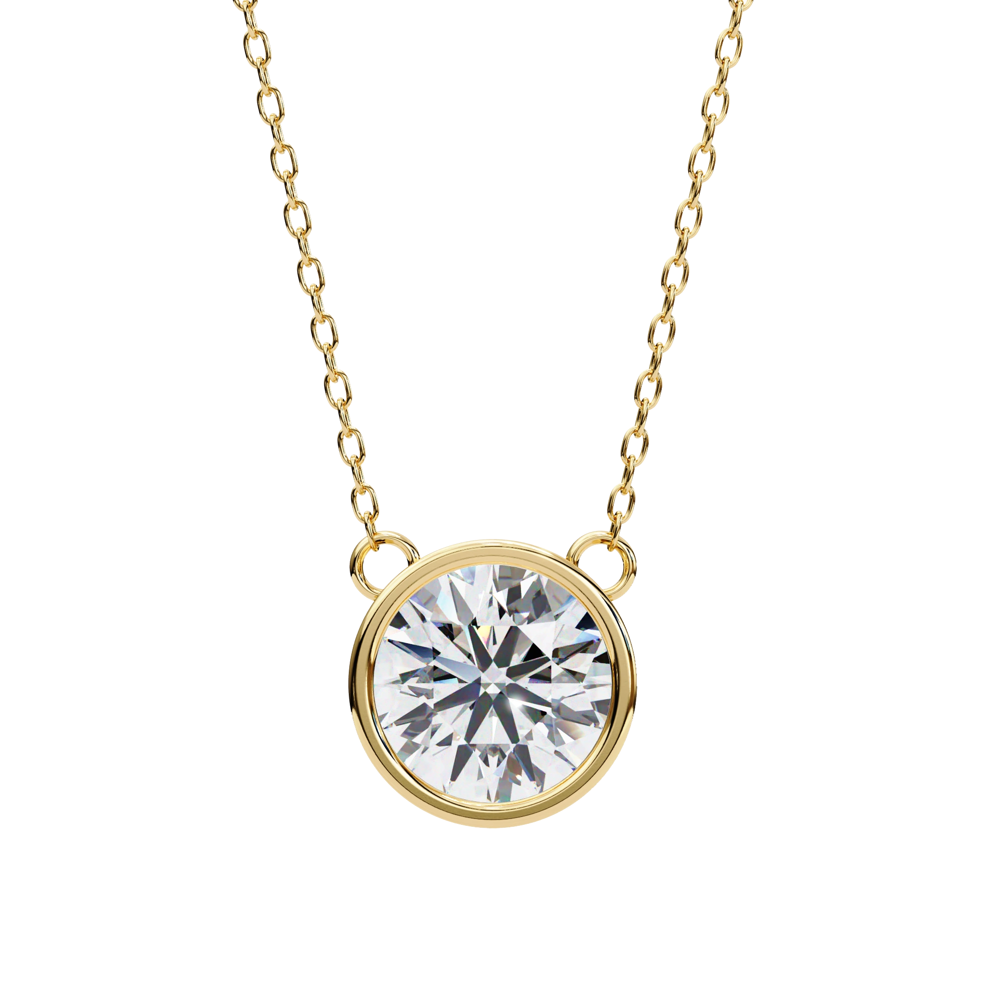 1.60ct Round Cut Bezel Set Lab Diamond Necklace in Yellow Gold