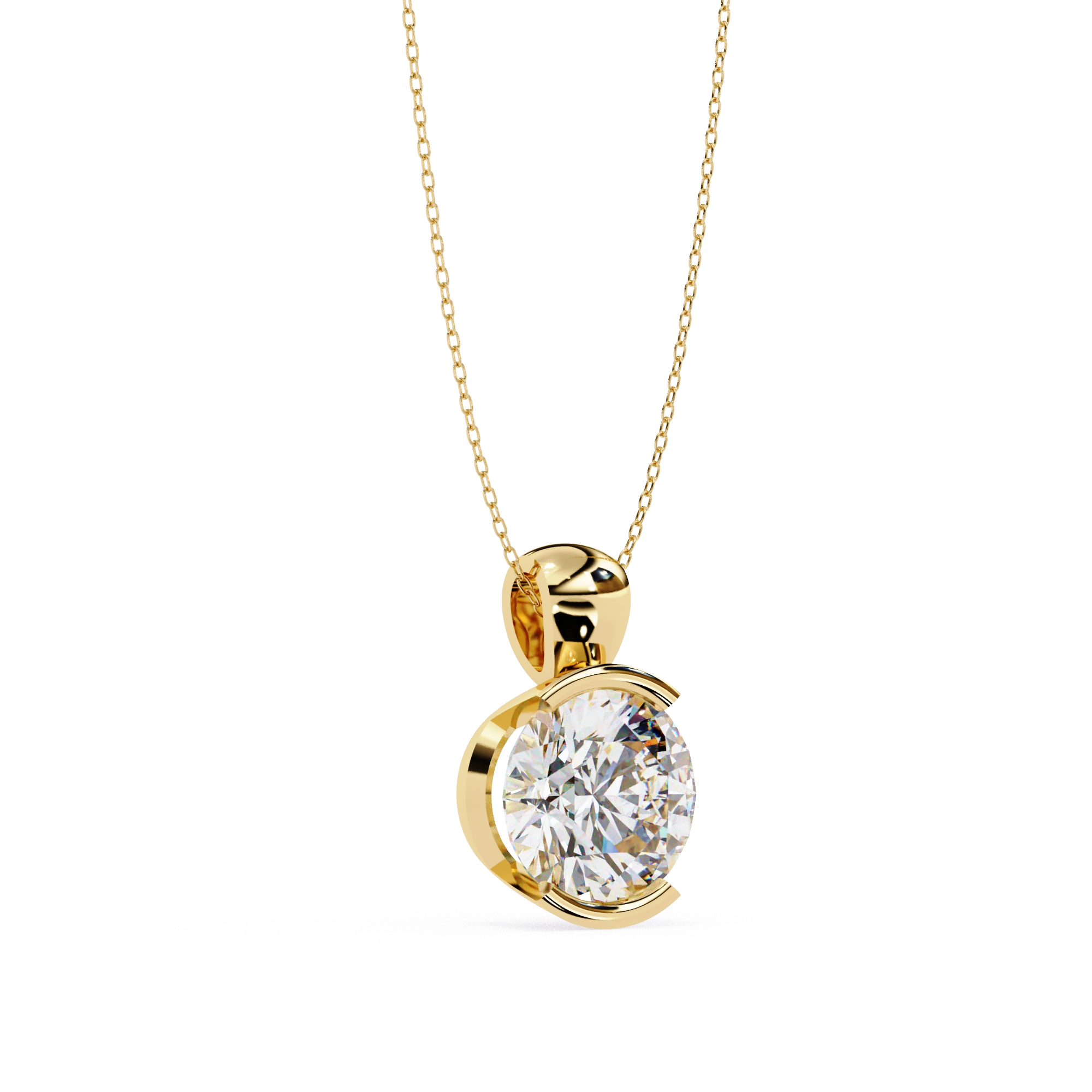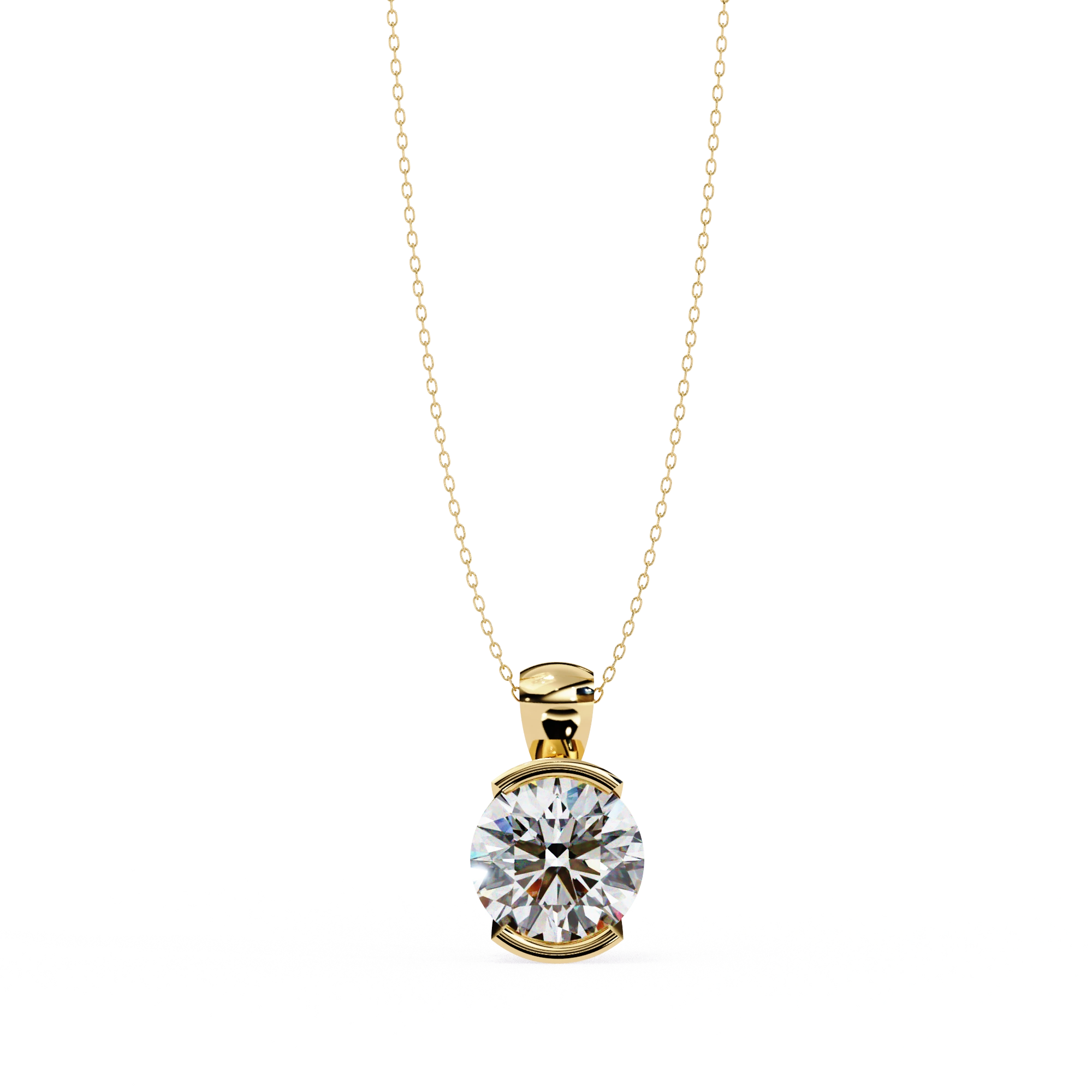 2.43ct Round Lab Diamond Bezel Set Pendant in Yellow Gold