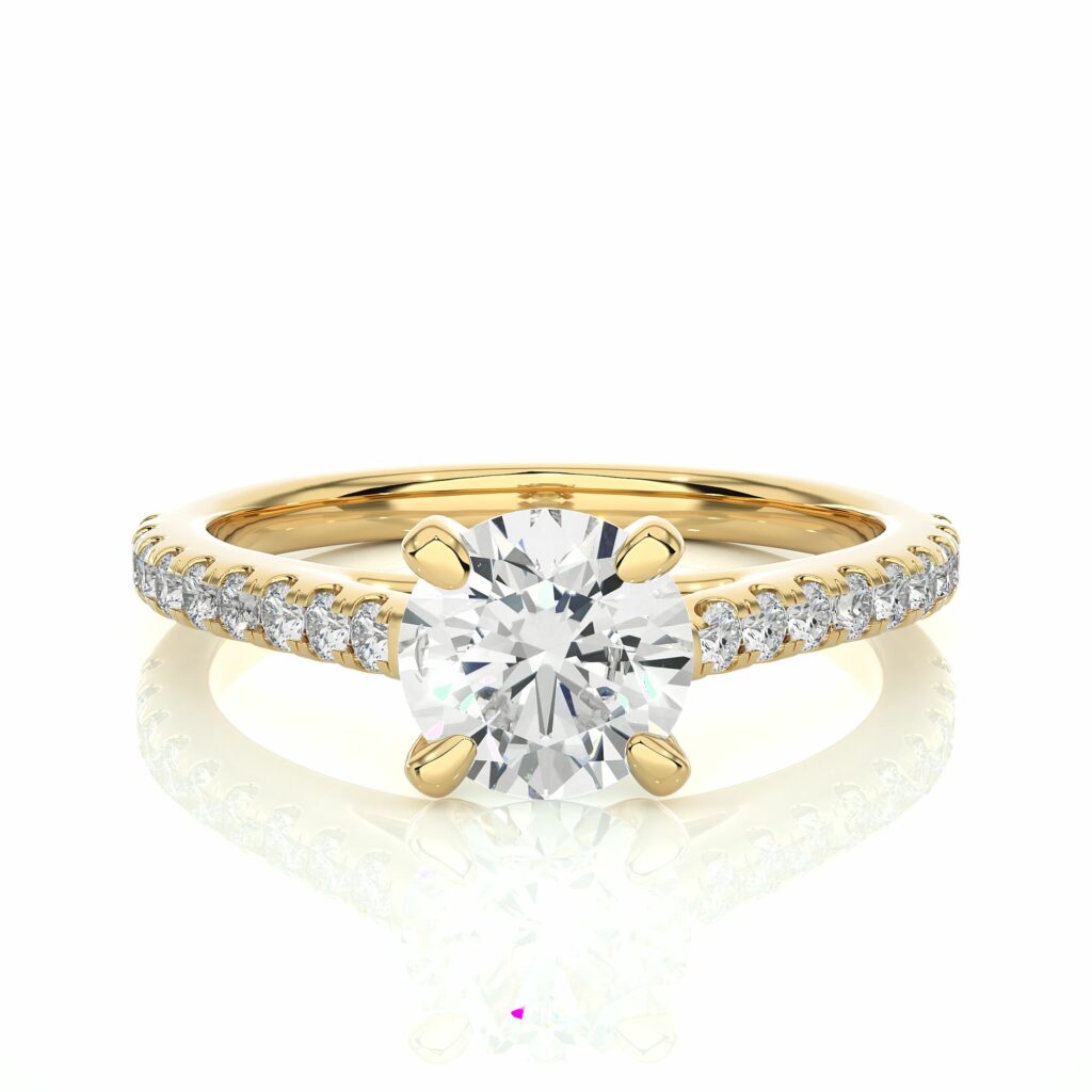 A classic and timeless engagement ring featuring a brilliant 1.40-carat round-cut diamond, securely set in a four-prong setting. Crafted in warm yellow gold, this ring symbolizes elegance and romance, making it the perfect choice for a lifelong commitment.