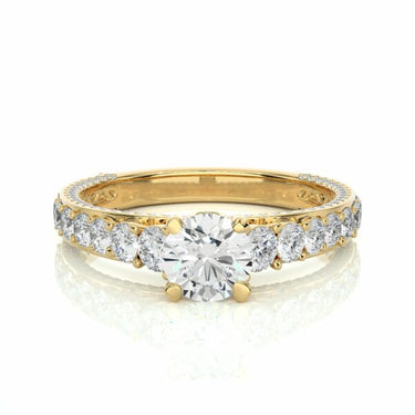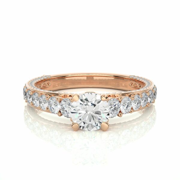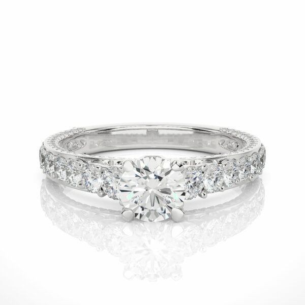 Round Cut Solitaire Prong Setting Diamond Ring With Side Accents
