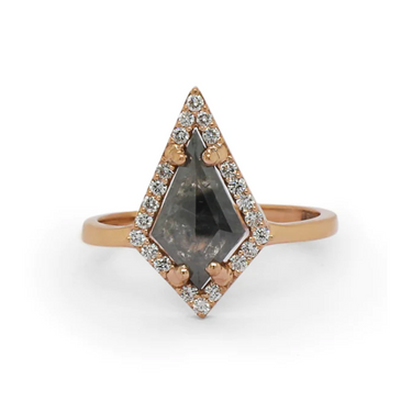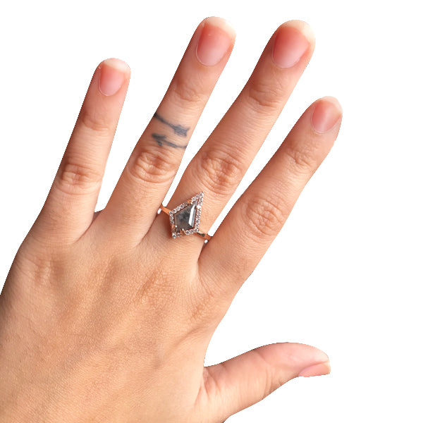 1.80 ct Kite Shaped Prong Settting Halo Salt And Pepper Diamond Ring