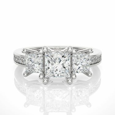 This Three-Stone Princess Cut Engagement Ring Stands As A Symbol Of Strength, Connection, And Individuality Crafted For Those Who Cherish Beauty With Meaning.