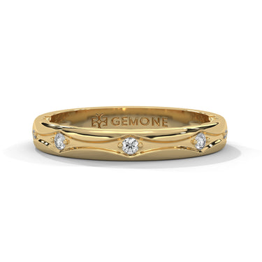 This 0.10 ct Lab Diamond Contour Wedding Band Has A Gently Curved Silhouette That Is Intended To Complement The Natural Shape Of An Engagement Ring. The Wave Design Adds Depth To The Band While Maintaining A Slim Profile.