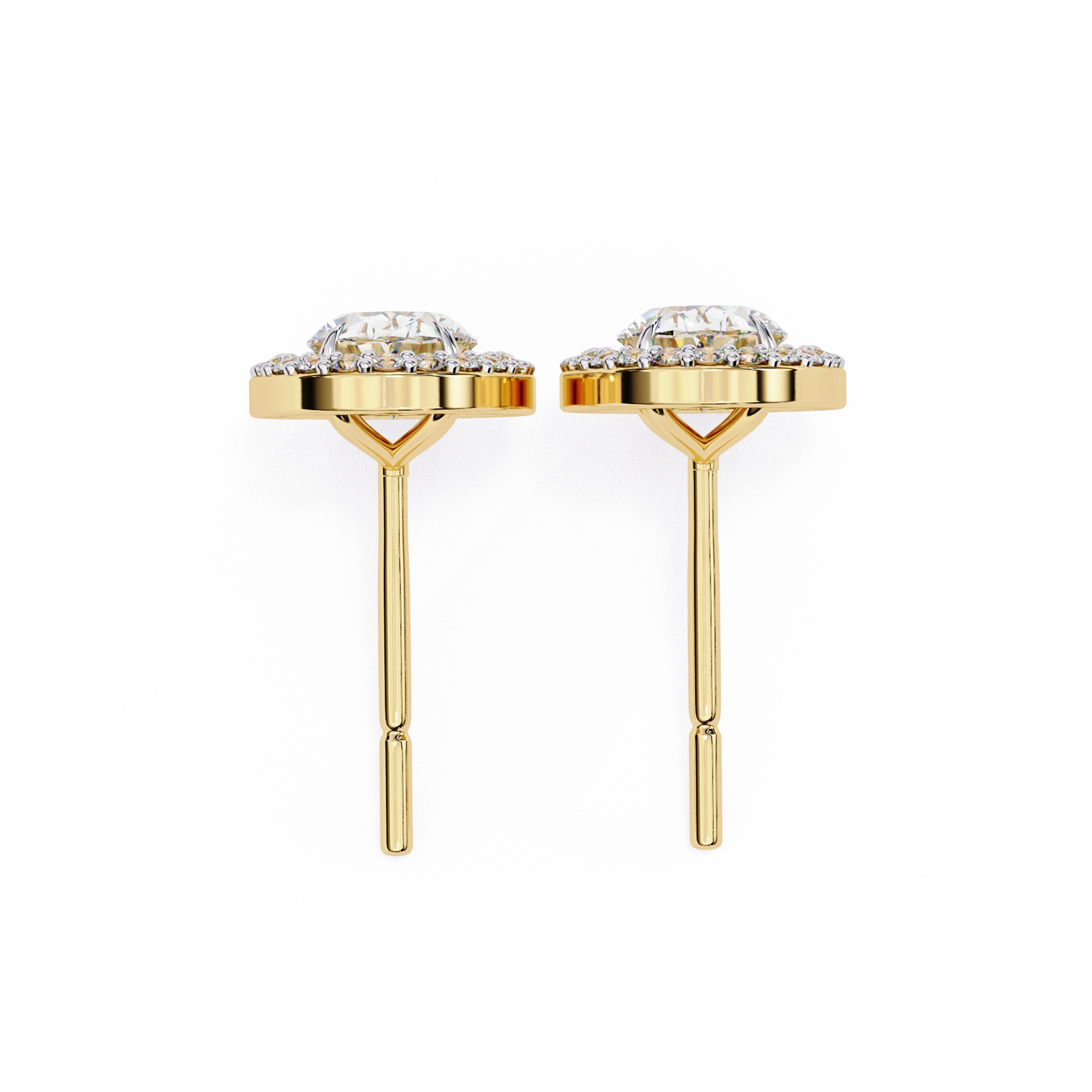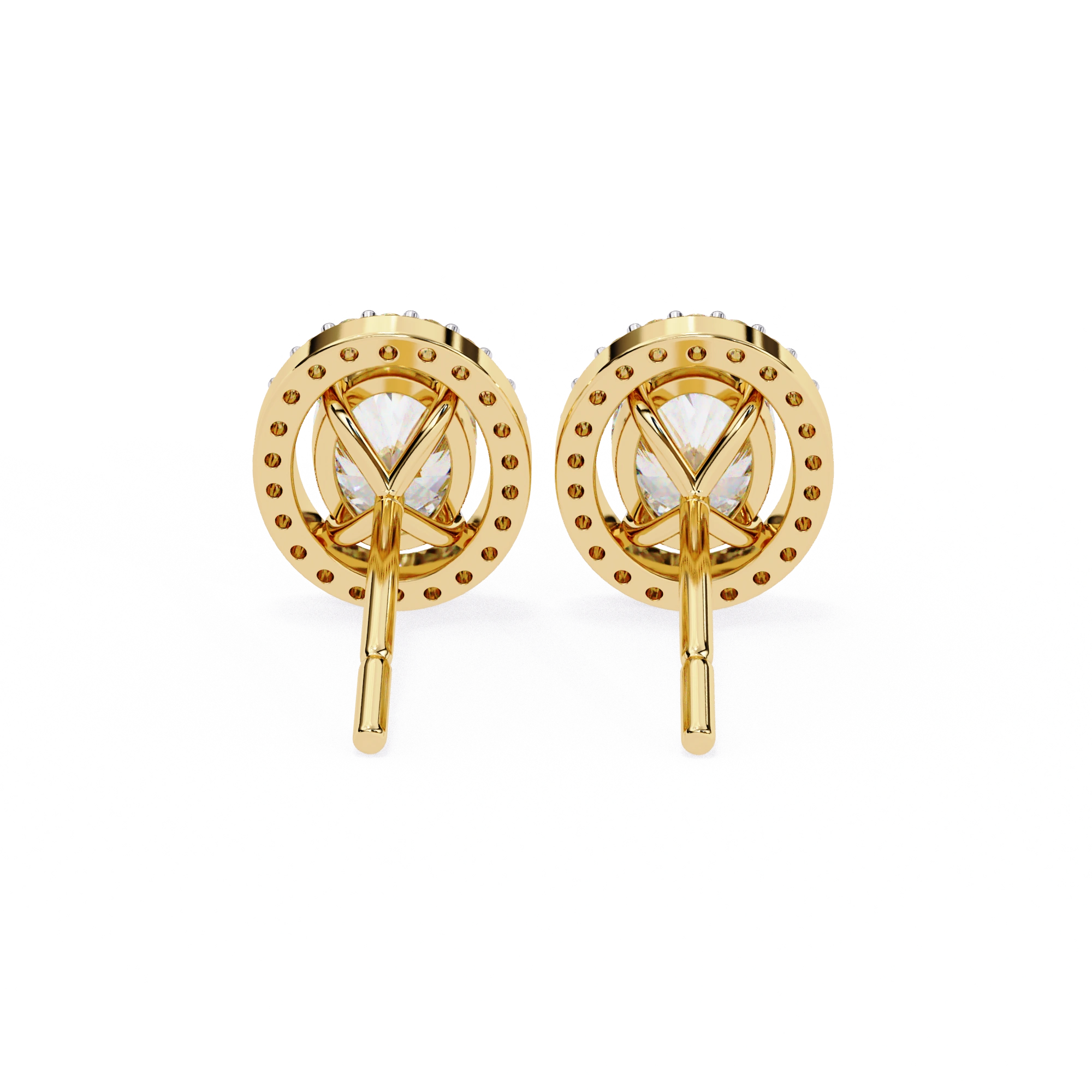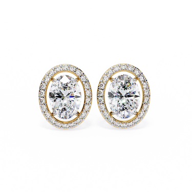 Each Oval Cut Center Features Precise Proportions With Sweet Fire Dispersion, Beautifully Enhanced By Pavé Halo Diamonds Adding Continuous Outer Glow. Secured In Prong Center With Pavé Halo Setting, The Loose Lab Grown Diamonds Shine Gently While The Sturdy Yellow Gold Frame Provides Warm Contrast, Comfort, And Everyday Durability. These Diamond Earrings Studs Are Built For Daily Confidence, Combining Romantic Halo Design With Reliable Construction.