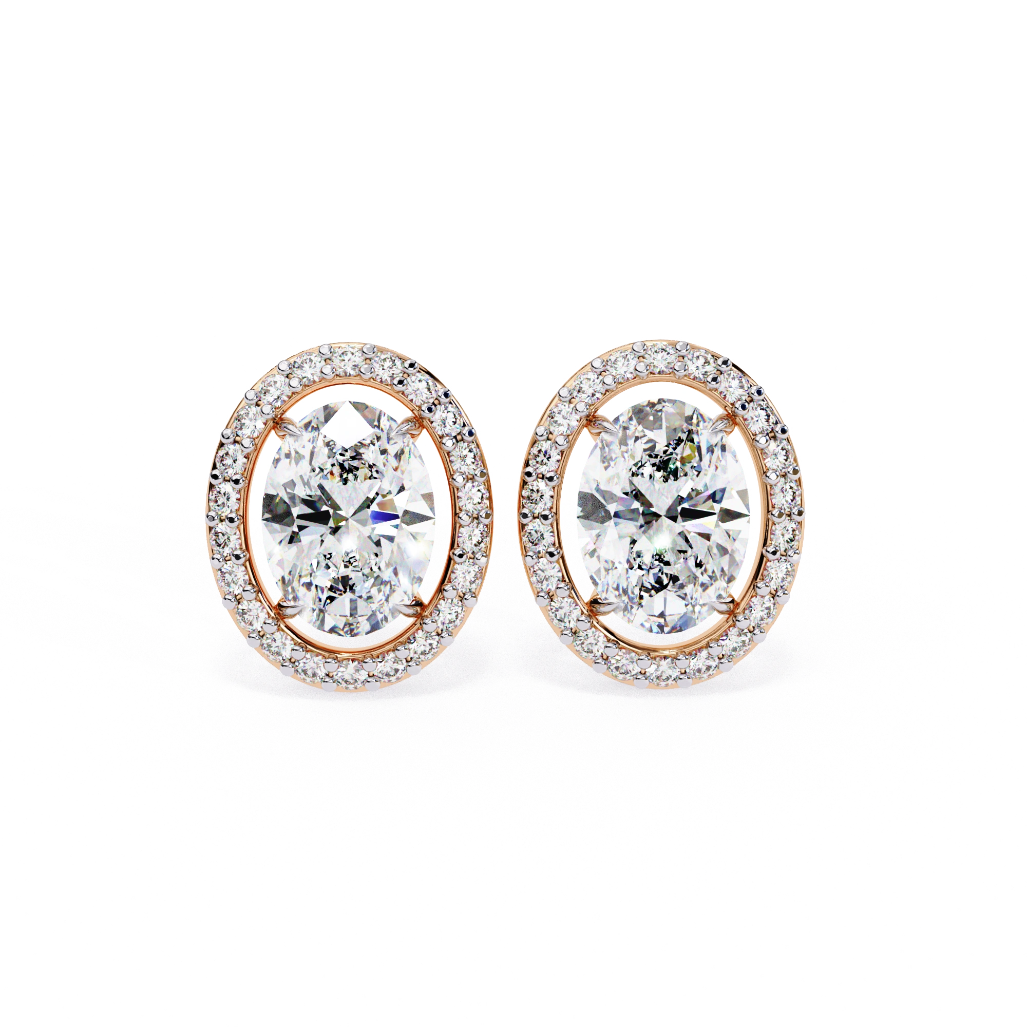 0.40 Carat Oval Diamond Halo Stud Earrings in Gold