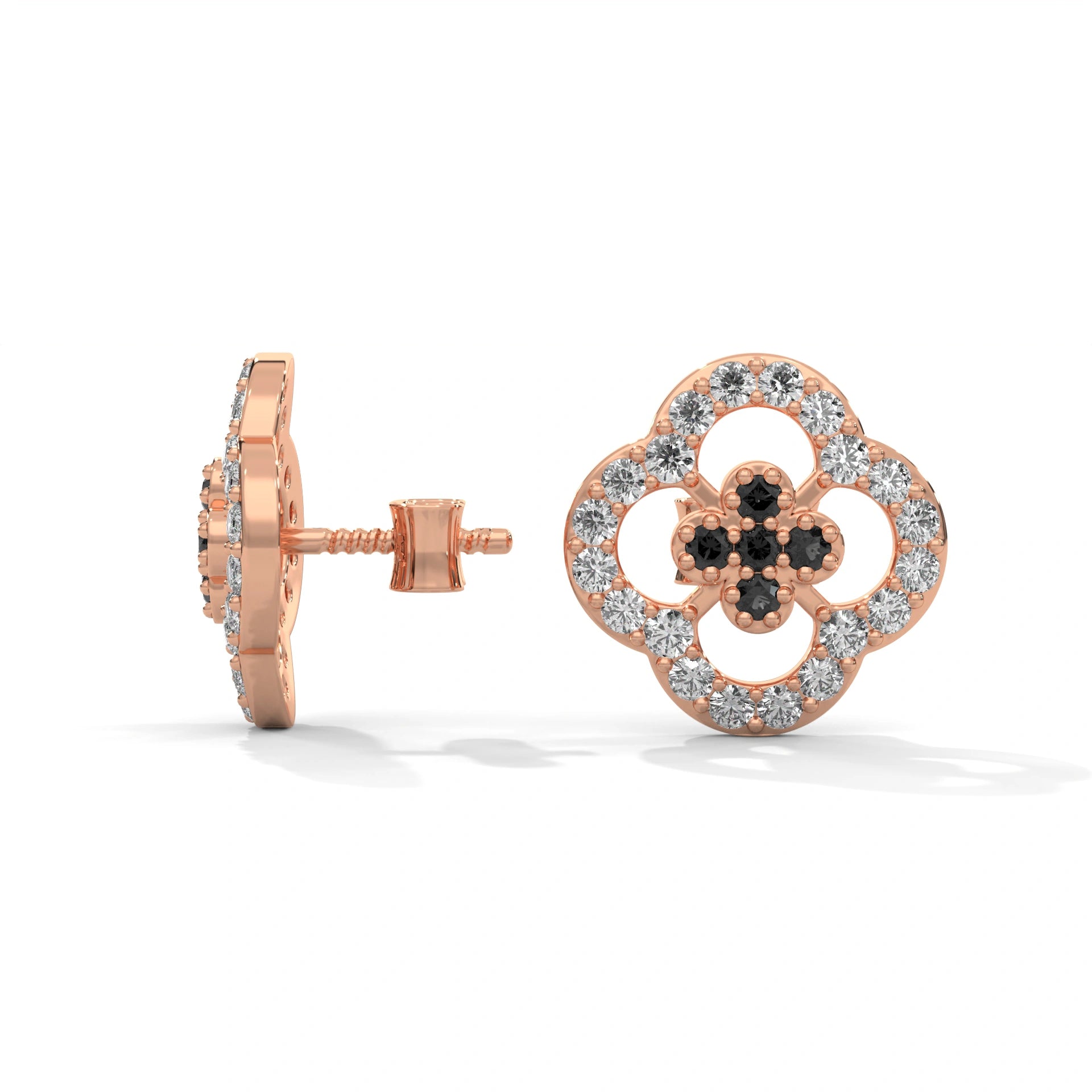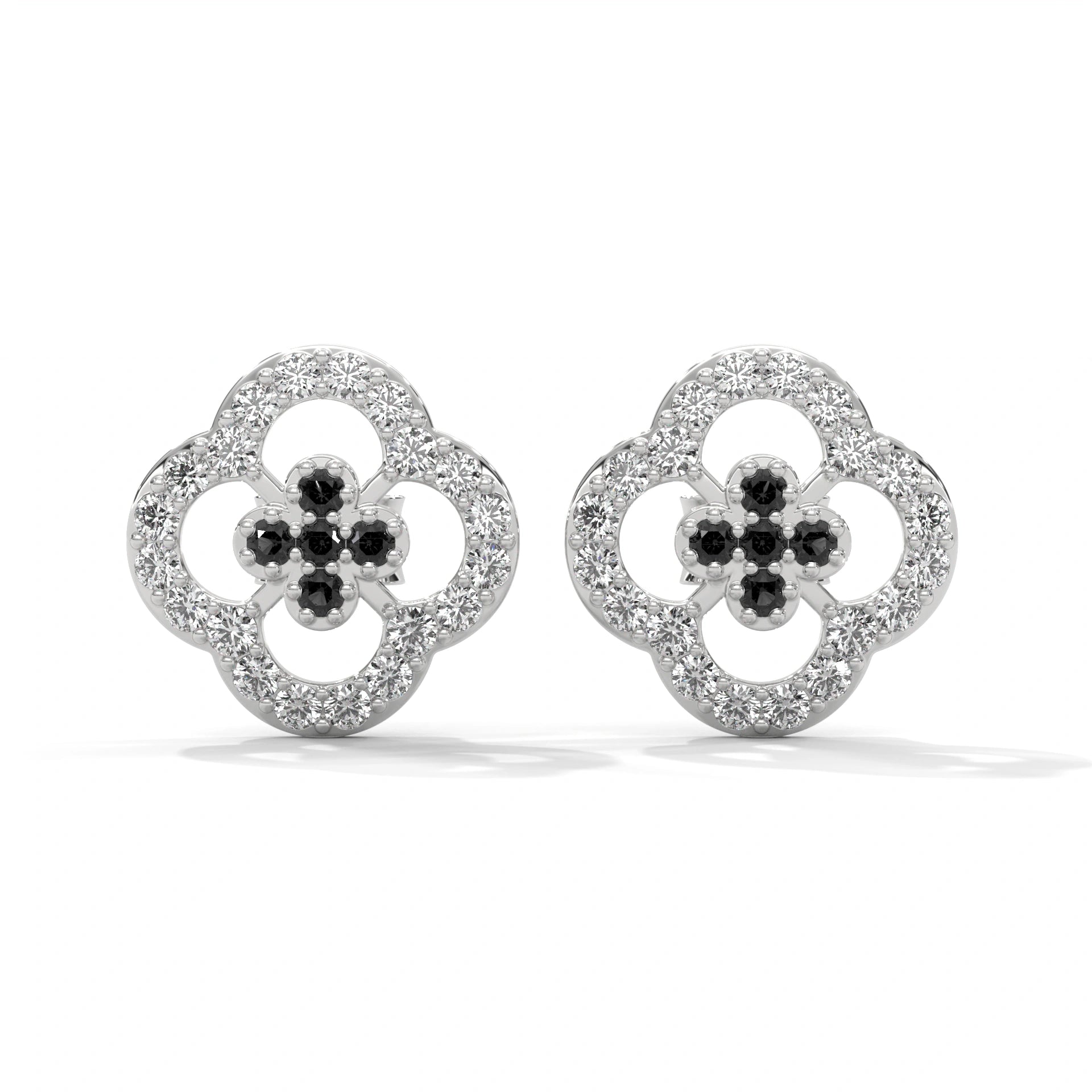 Crafted With Exceptional Care, The Clover Cluster Sits Securely In Prongs For Everyday Comfort, Offering A Whimsical Yet Refined Look. Available In White Gold, Rose Gold, Yellow Gold, And Platinum, These Black Nd White Stud Earrings For Women Combine Premium Craftsmanship With Lasting Durability, Ensuring They Stay A Treasured Piece For Years.​