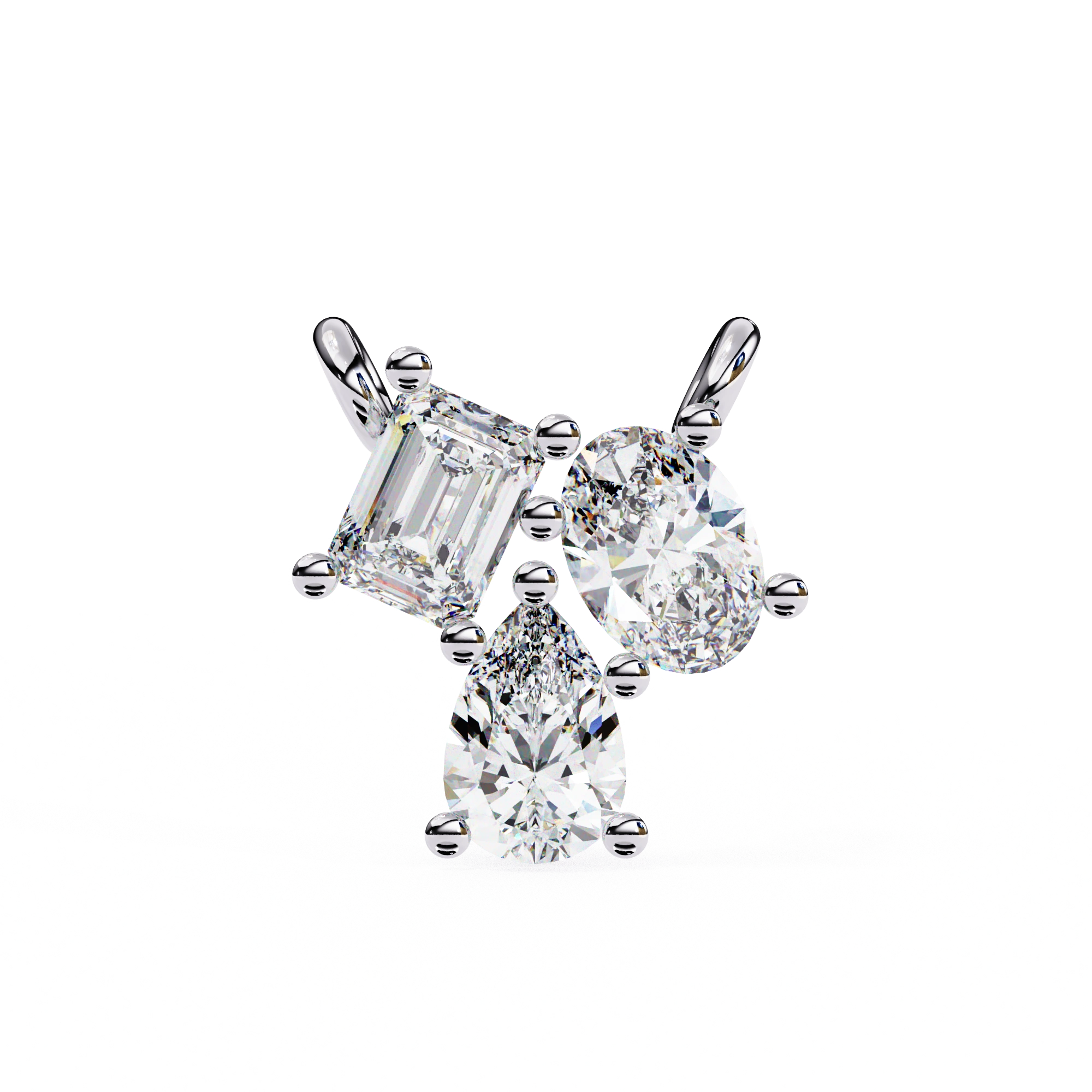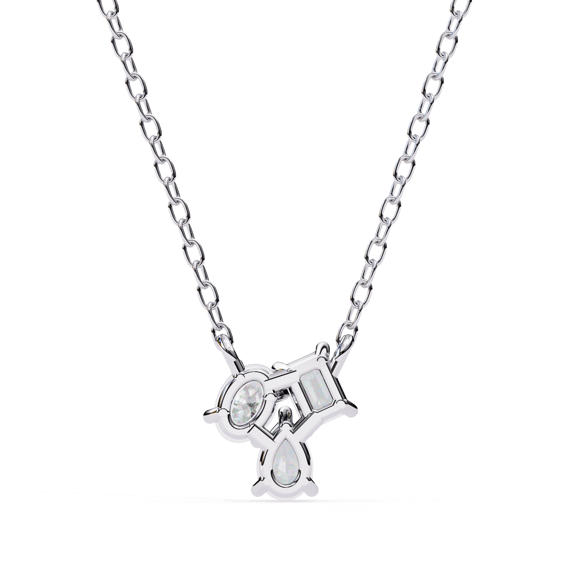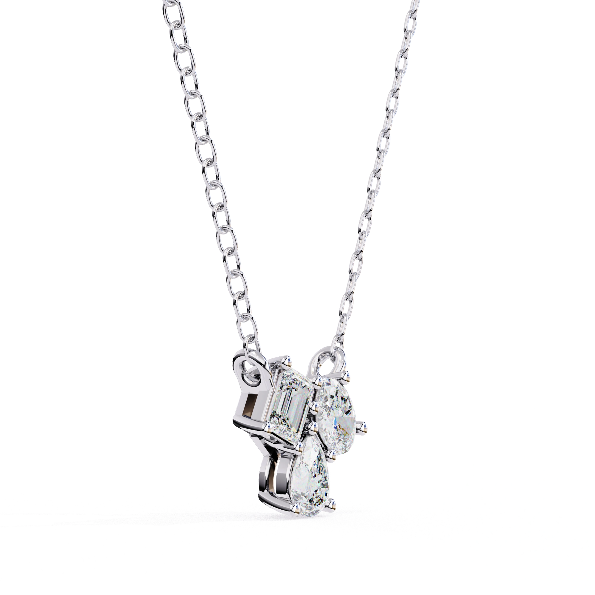 This 0.50ct Lab Diamond Cluster Necklace Features A Mix Of Shapes Arranged In An Off-Balance Layout For A Creative Look. The Lab Diamond Cluster Necklace Includes Emerald, Oval, And Pear Cuts Placed Together To Form A Design That Feels Different From Traditional Styles.