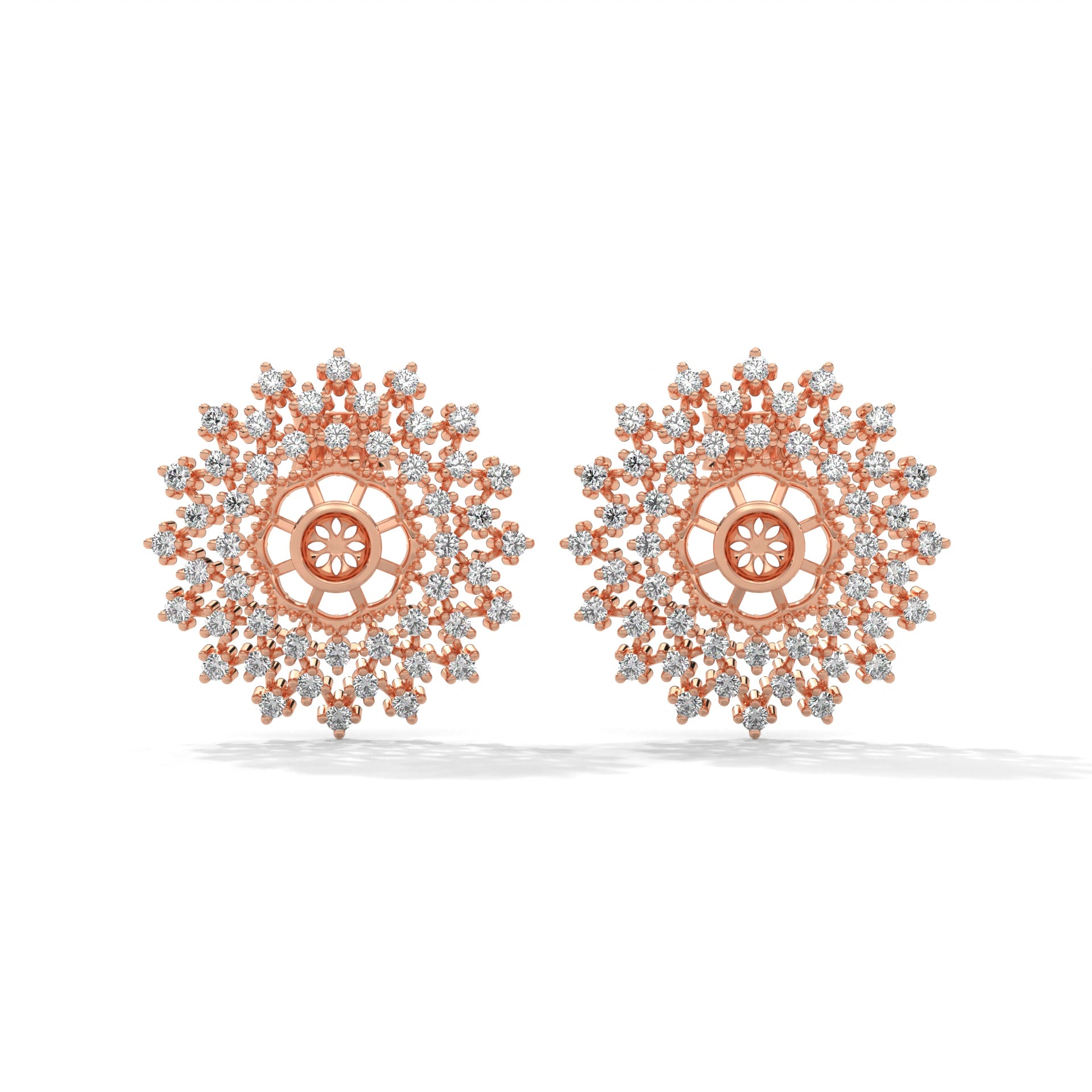0.96 Carat Diamond Earrings Studs with Floral Mandala Design