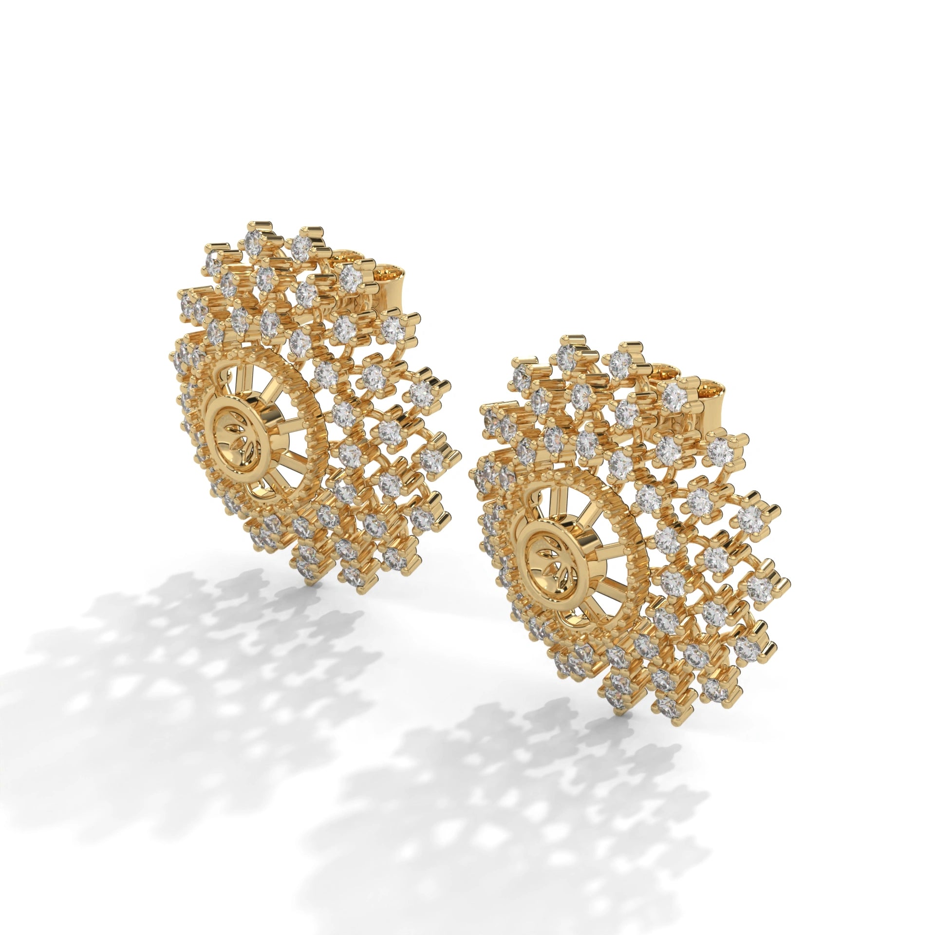 Discover These Practical 0.96 Carat Cluster Stud Earrings In Yellow Gold With Prong Settings. Each Mens Diamond Earrings Features Multiple Round-Cut Lab-Grown Diamonds, Arranged In A Tight Cluster Around A Center Stone. Prongs Hold Each Diamond Securely While Exposing Facets For Steady Sparkle From All Angles. The 6mm Design Provides Clear Cluster Detail Without Bulk, Suitable For Daily Wear, Office Settings, Or Evening Events.