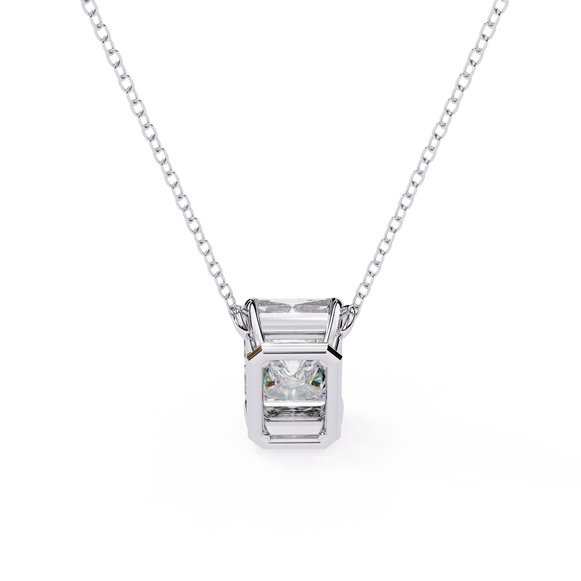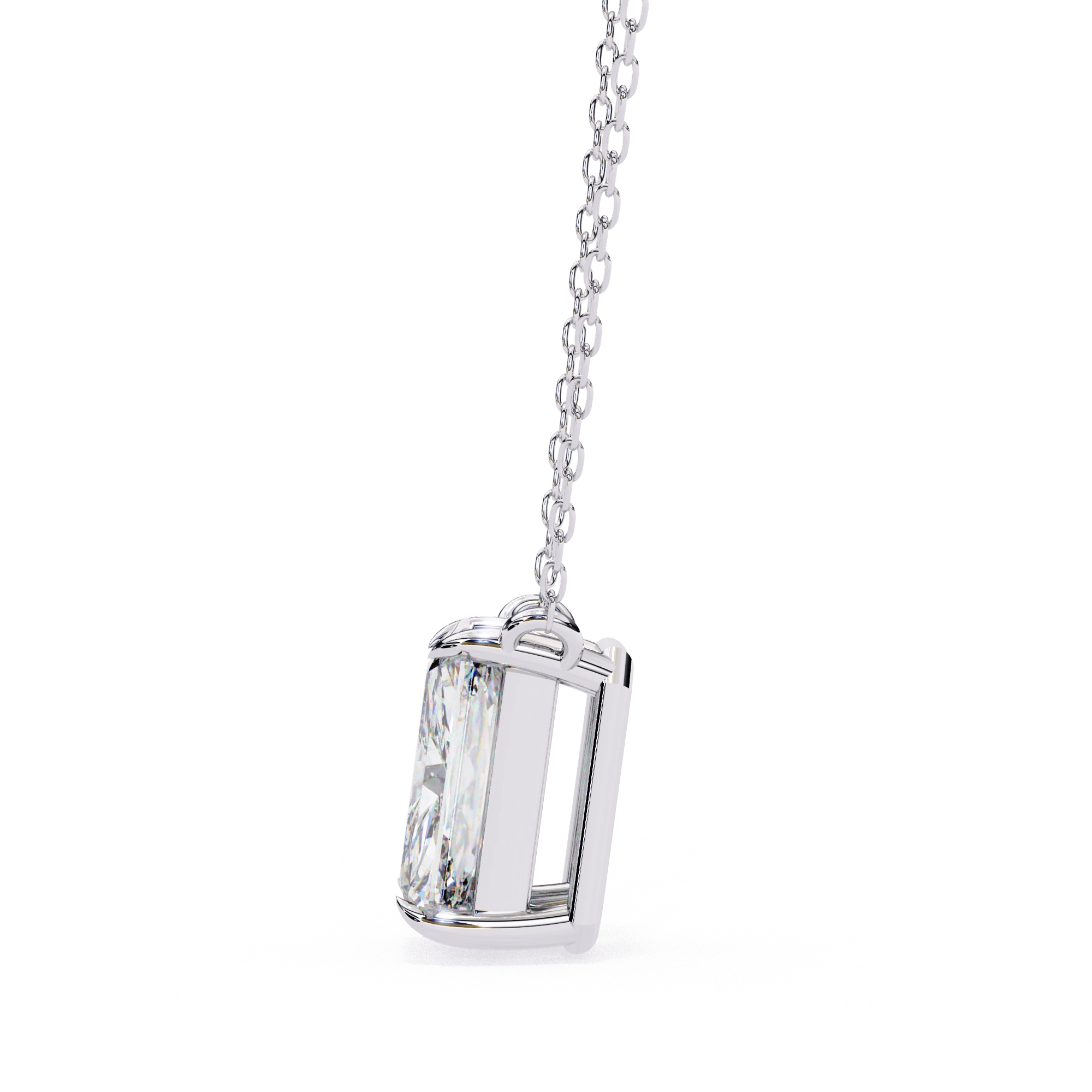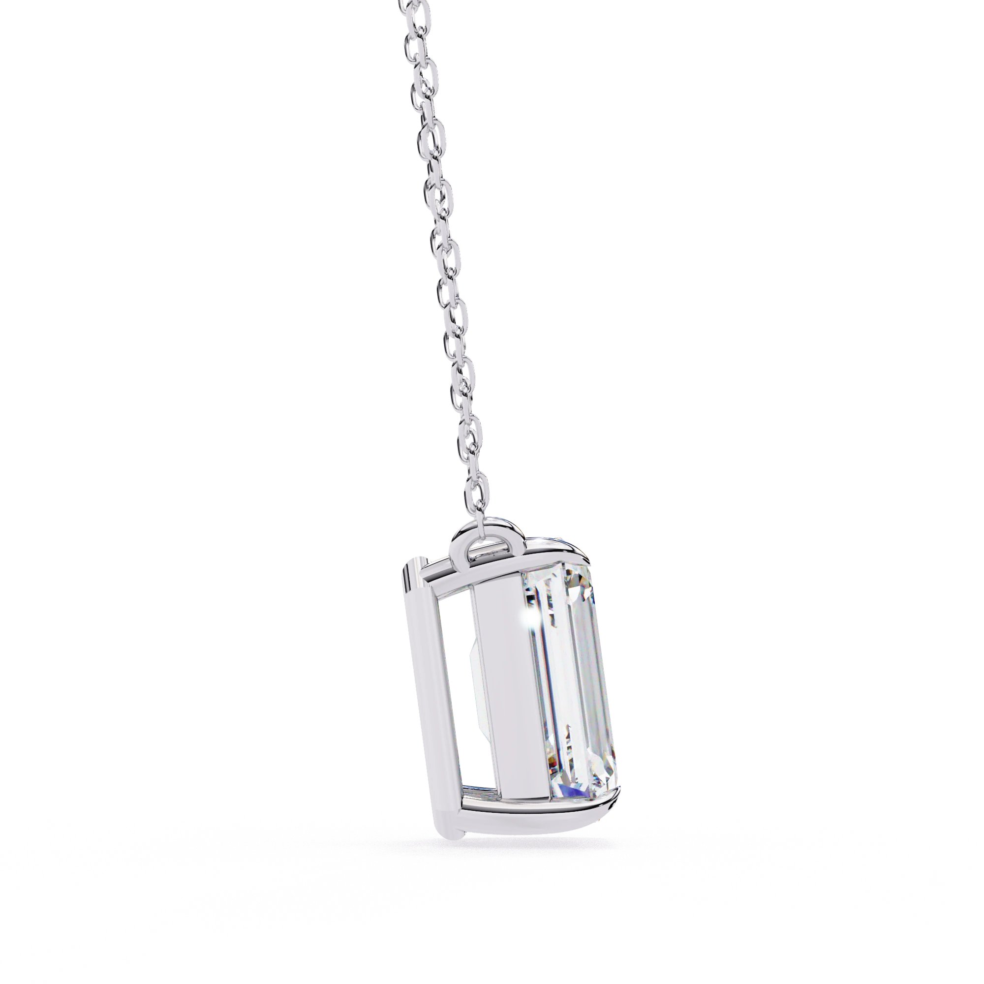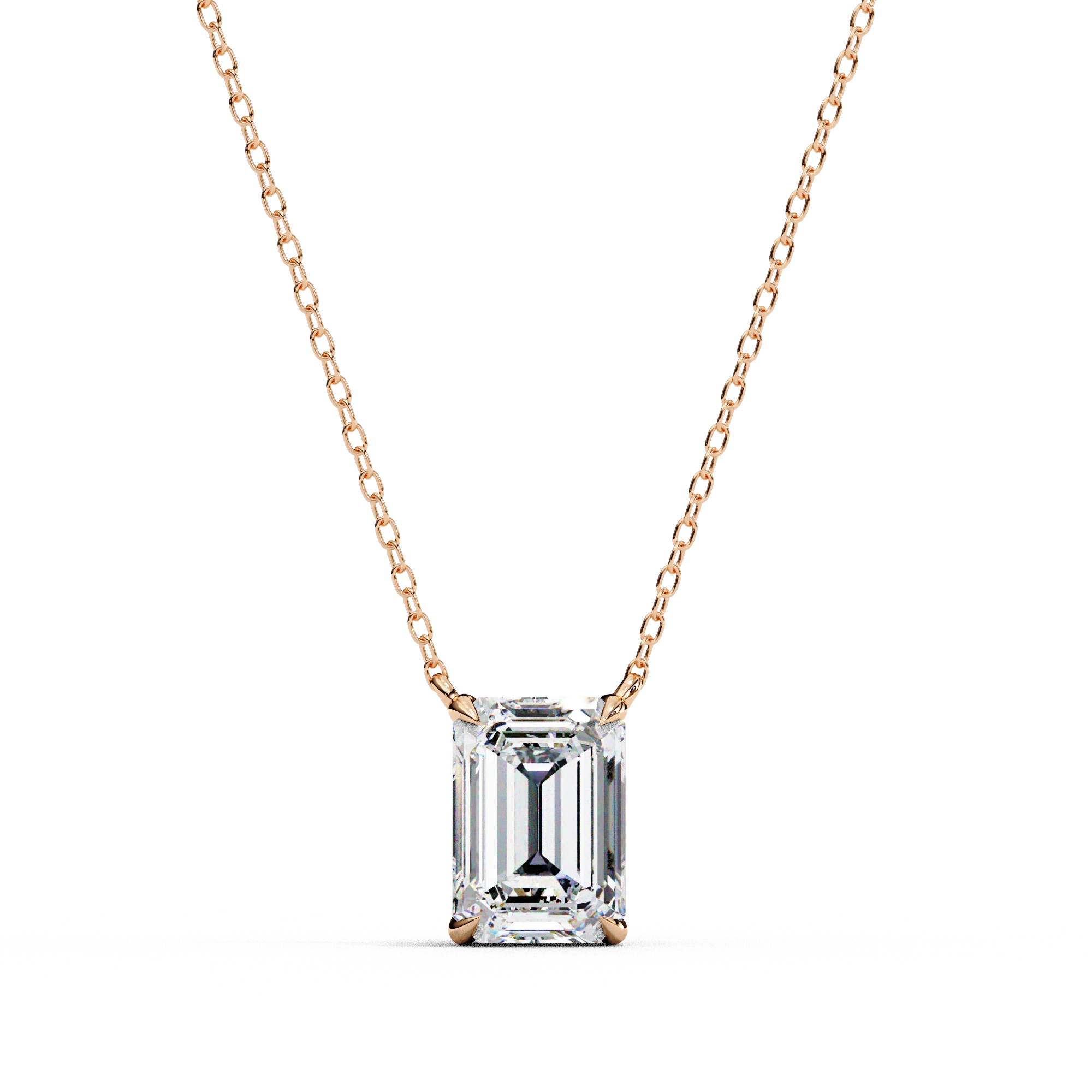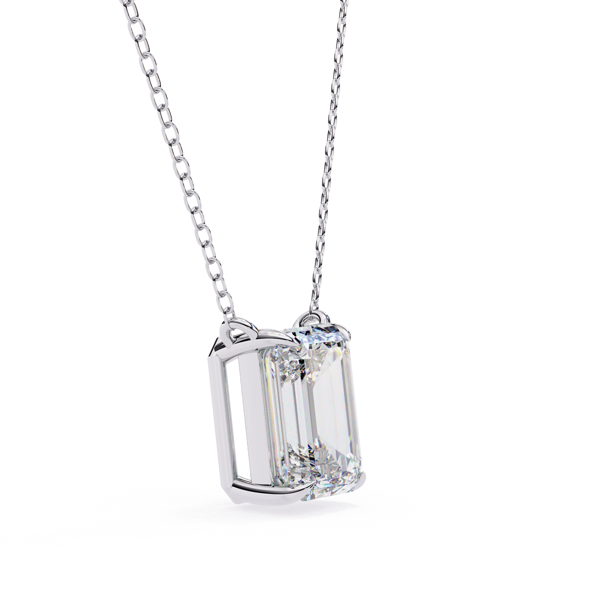This 1 Ct Emerald Lab Diamond Prong Set Necklace Features A Rectangular Stone With Long, Clean Lines. The Emerald Lab Diamond Necklace Has A Step-Cut Design That Gives It A Clear And Structured Look Without Extra Detailing.