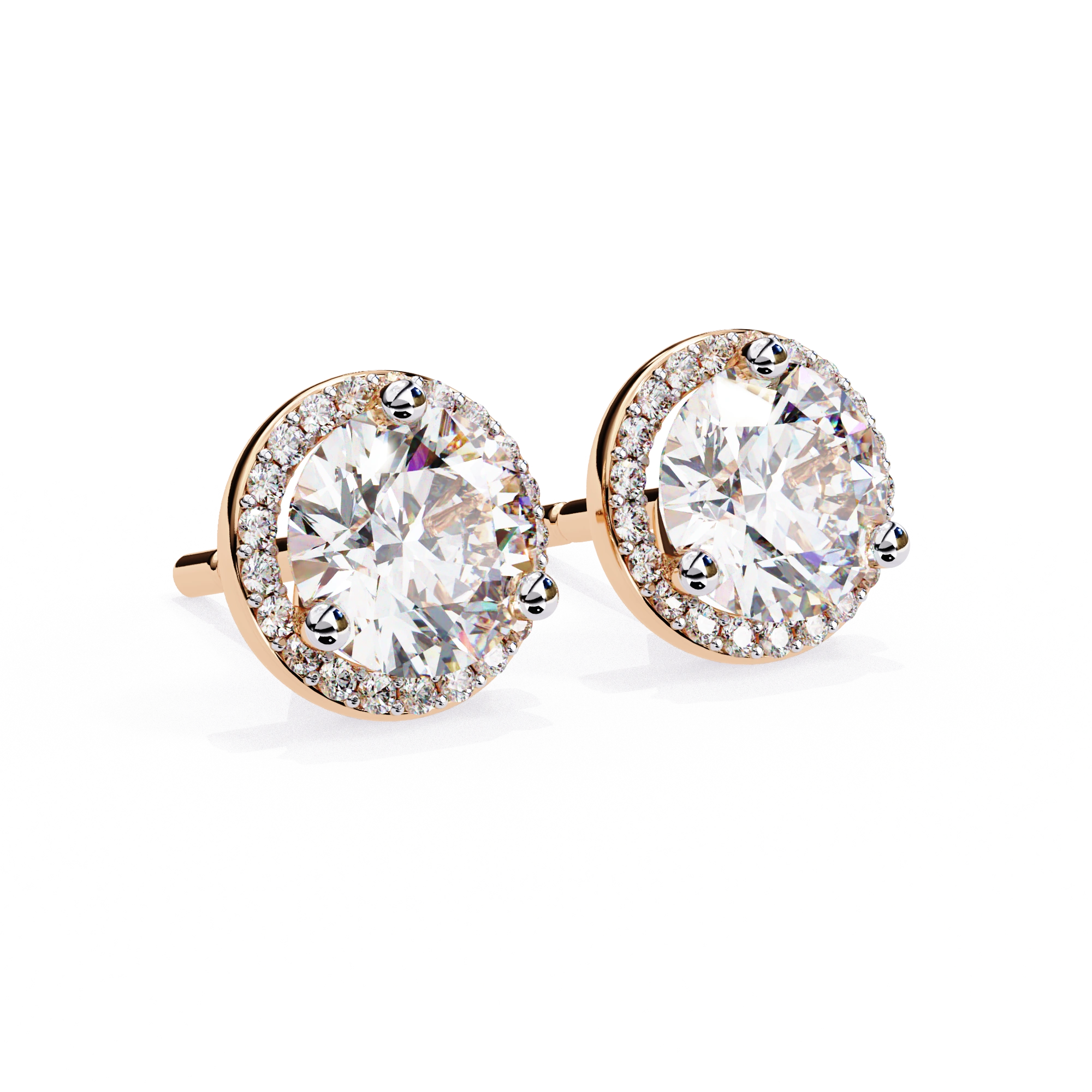 2.2 Ct. Round Halo Diamond Stud Earrings Women's Classic Bezel Look