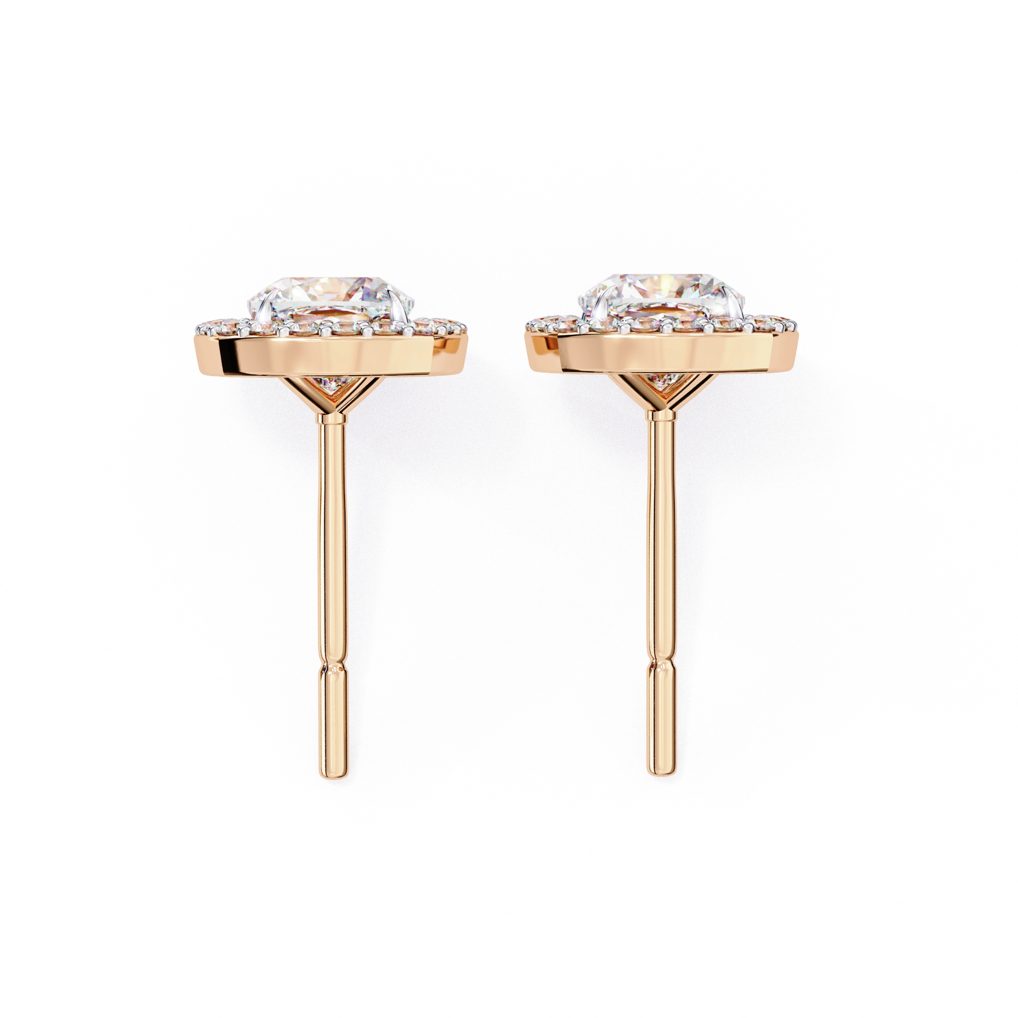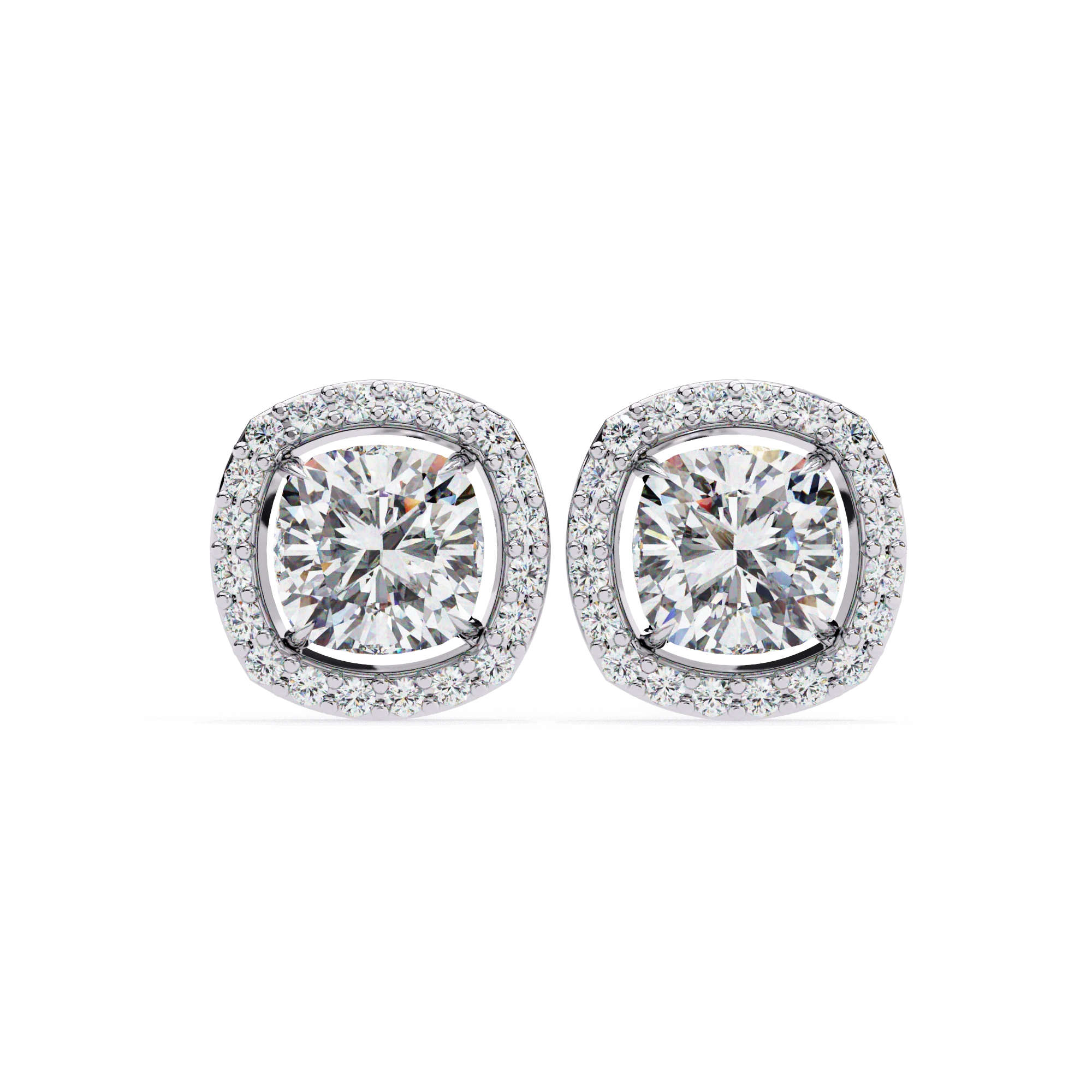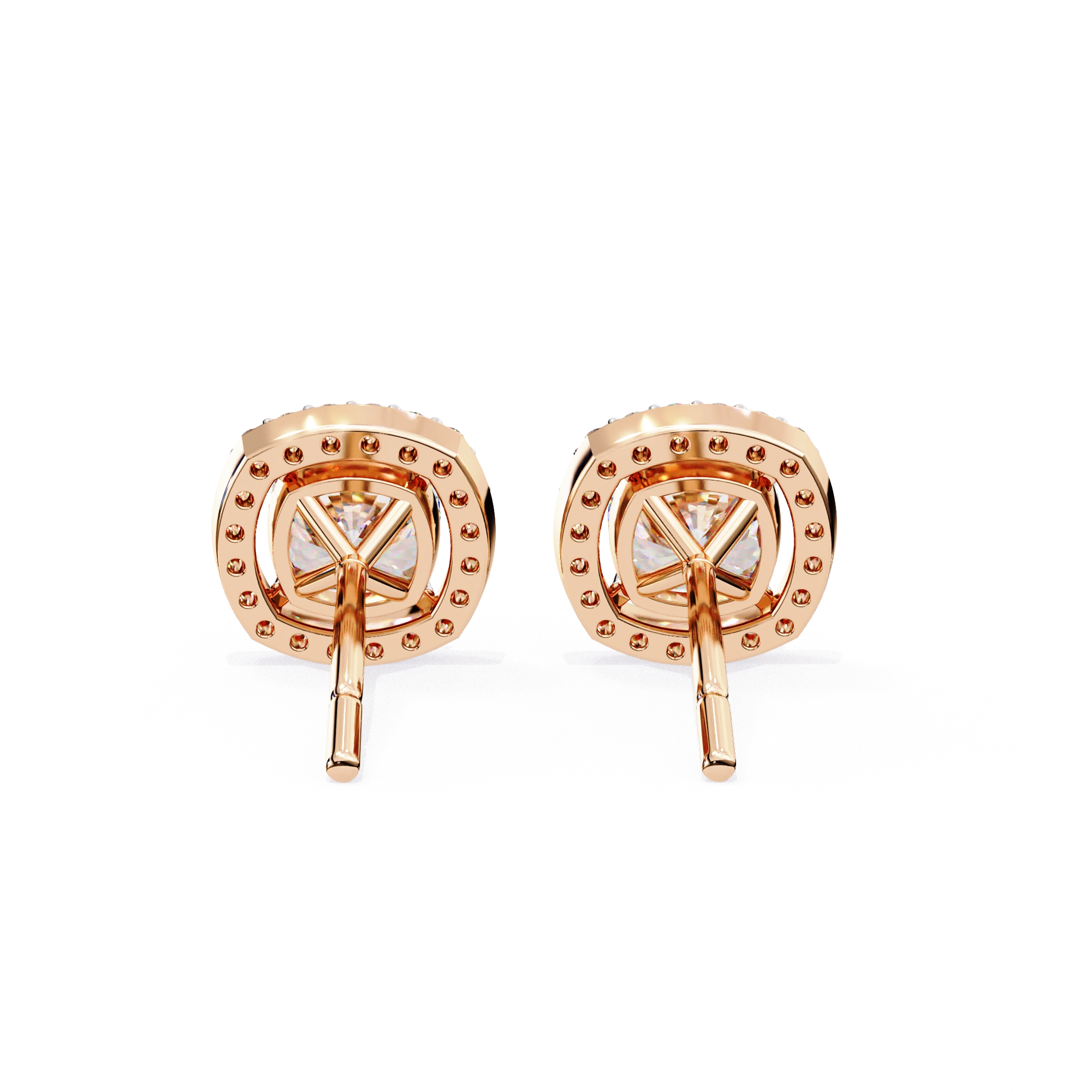 Each Cushion Cut Center Features Excellent Proportions With Superior Fire Dispersion, Enhanced By Pavé Halo Diamonds Adding Continuous Outer Sparkle. Secured In Prong And Pavé Halo Setting, The Loose Lab Grown Diamonds Shine Vibrantly While The Sturdy Rose Gold Frame Provides Subtle Pink Tones, Comfort, And Everyday Durability. These Stud Earrings For Women Are Built For Versatile Wear, Combining Halo Enhancement With Reliable Construction.​