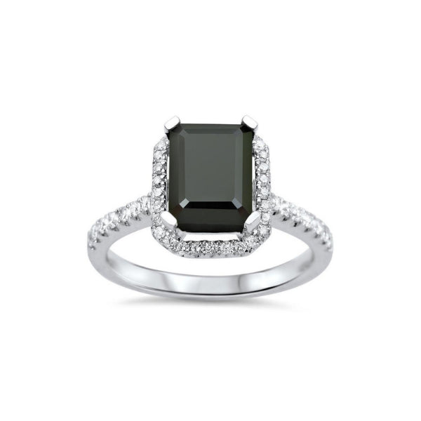 2.50 Carat Emrald Cut Halo Prong Set Black And White Diamond Ring