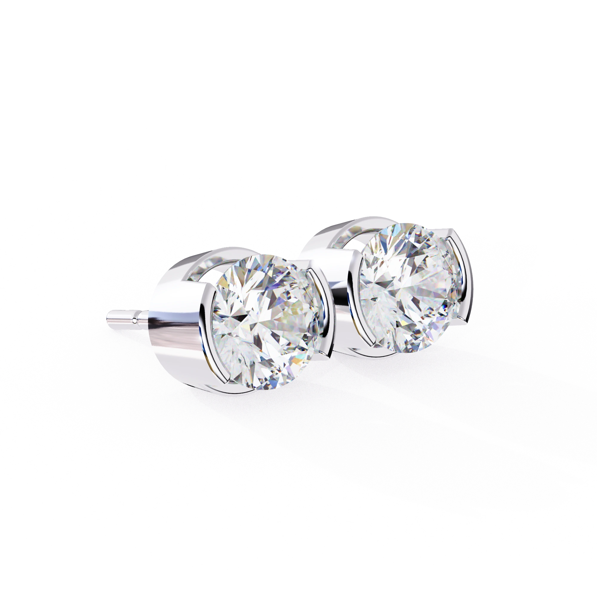 2.6 Carat Round Bezel Set Diamond Stud Earrings