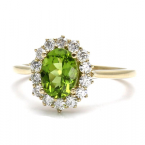 4.28 Carat Oval Shape Halo Peridot Gemstone Ring