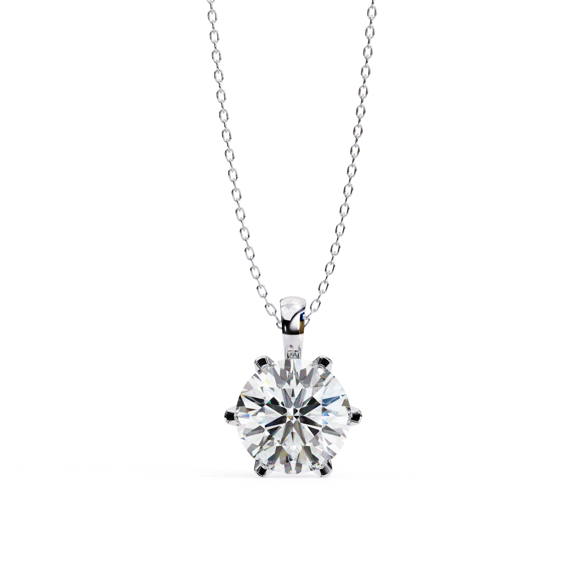 Experience the royal touch of elegance with this breathtaking 2.43 Carat Round Lab Diamond Crown Basket Pendant, carefully crafted to highlight brilliance with superior craftsmanship. The breathtaking Round Lab Diamond Pendant boasts expertly cut faceting to optimize fire and brilliance, ensuring mesmerizing light effects from all directions.