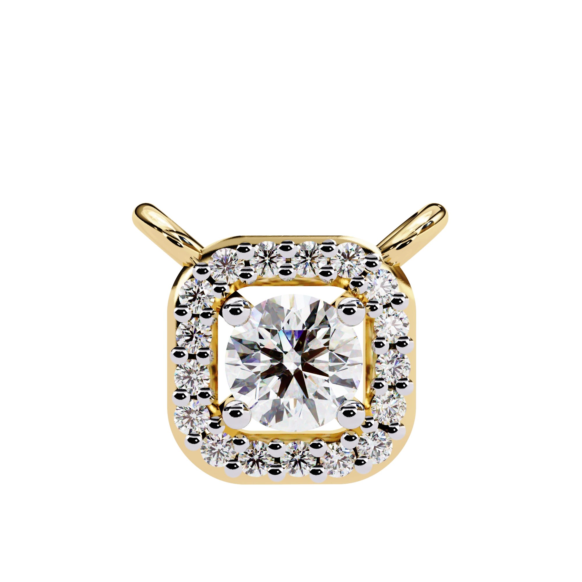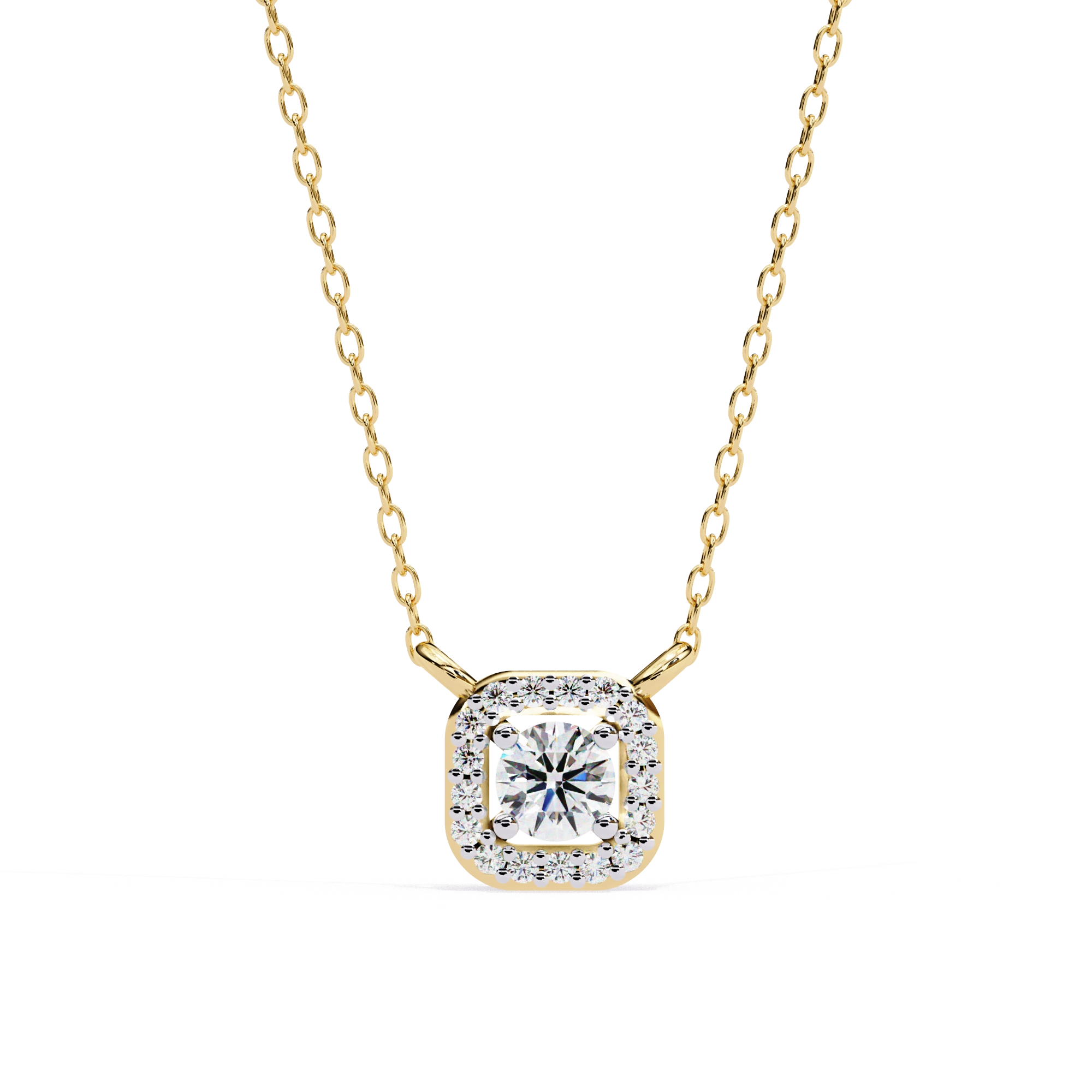 Round Lab Diamond Halo Necklace In Yellow Gold