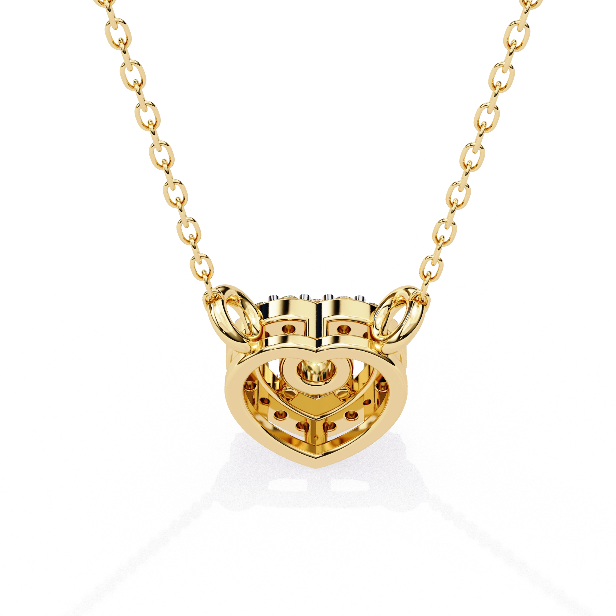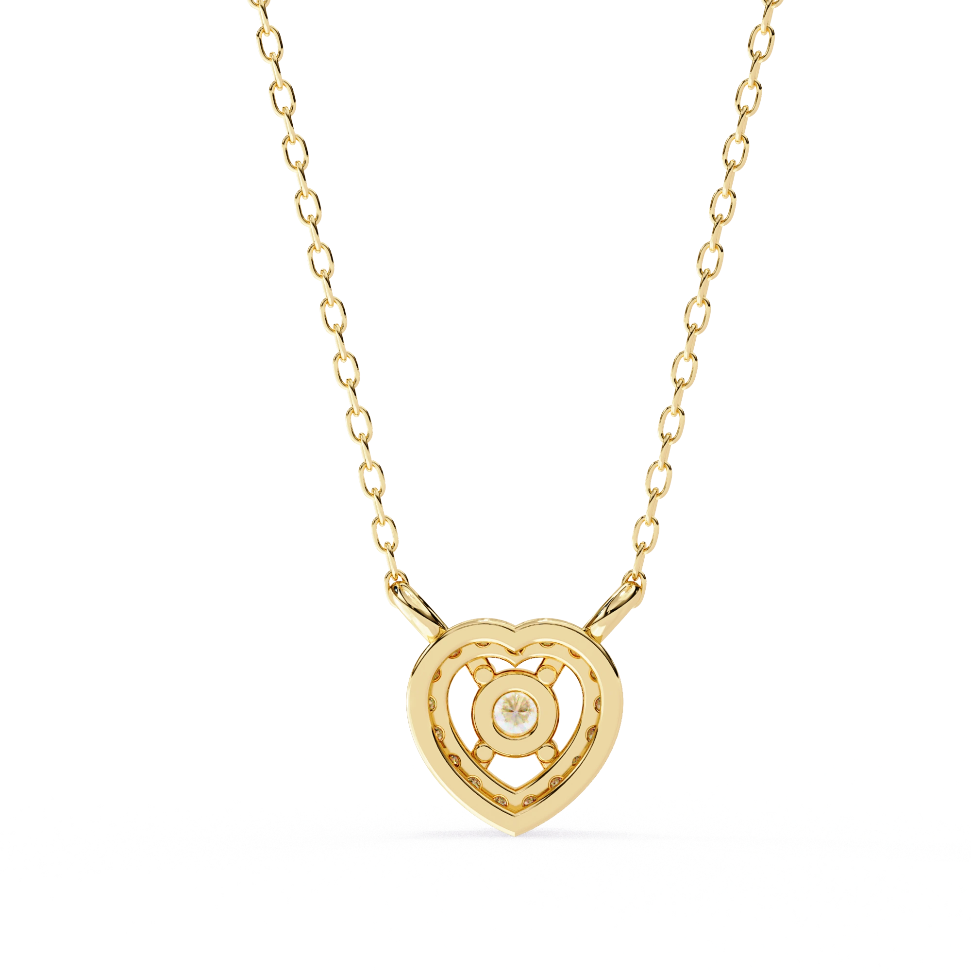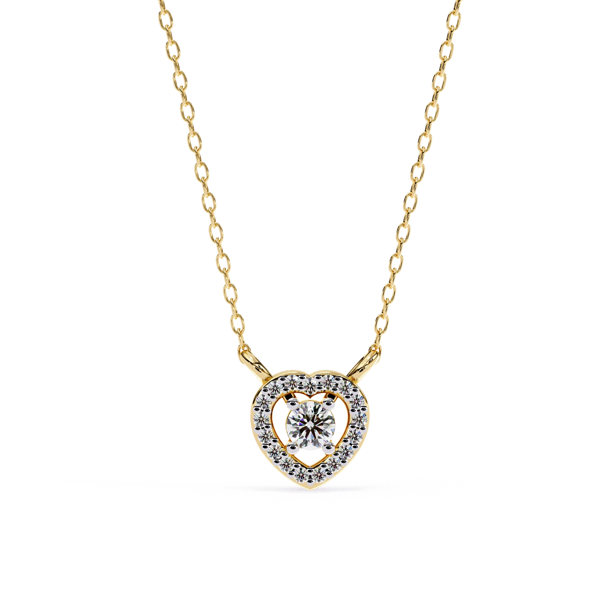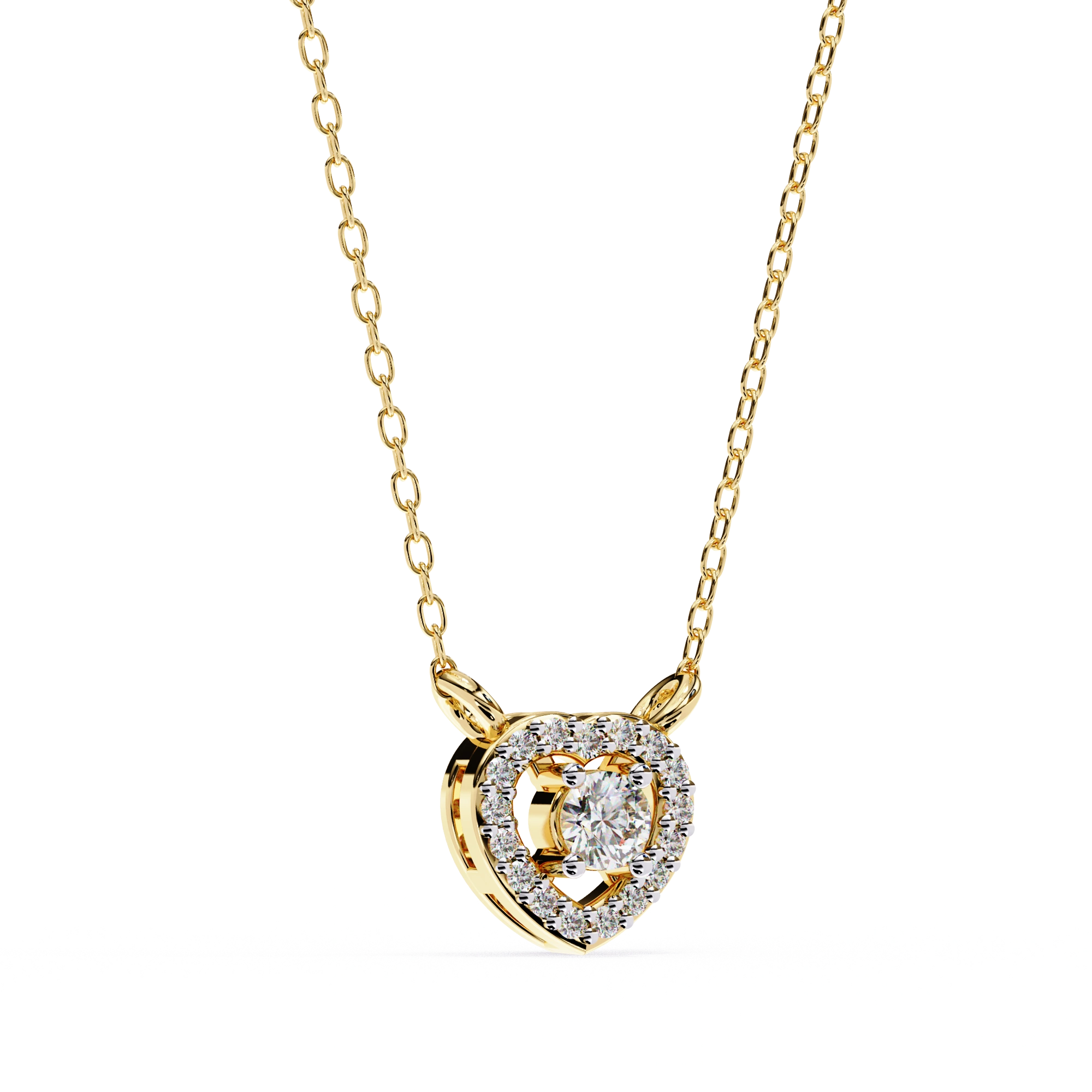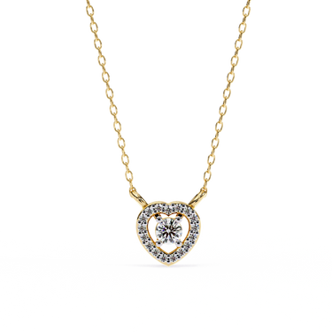 Round Lab Diamond Heart Halo Necklace In Yellow Gold