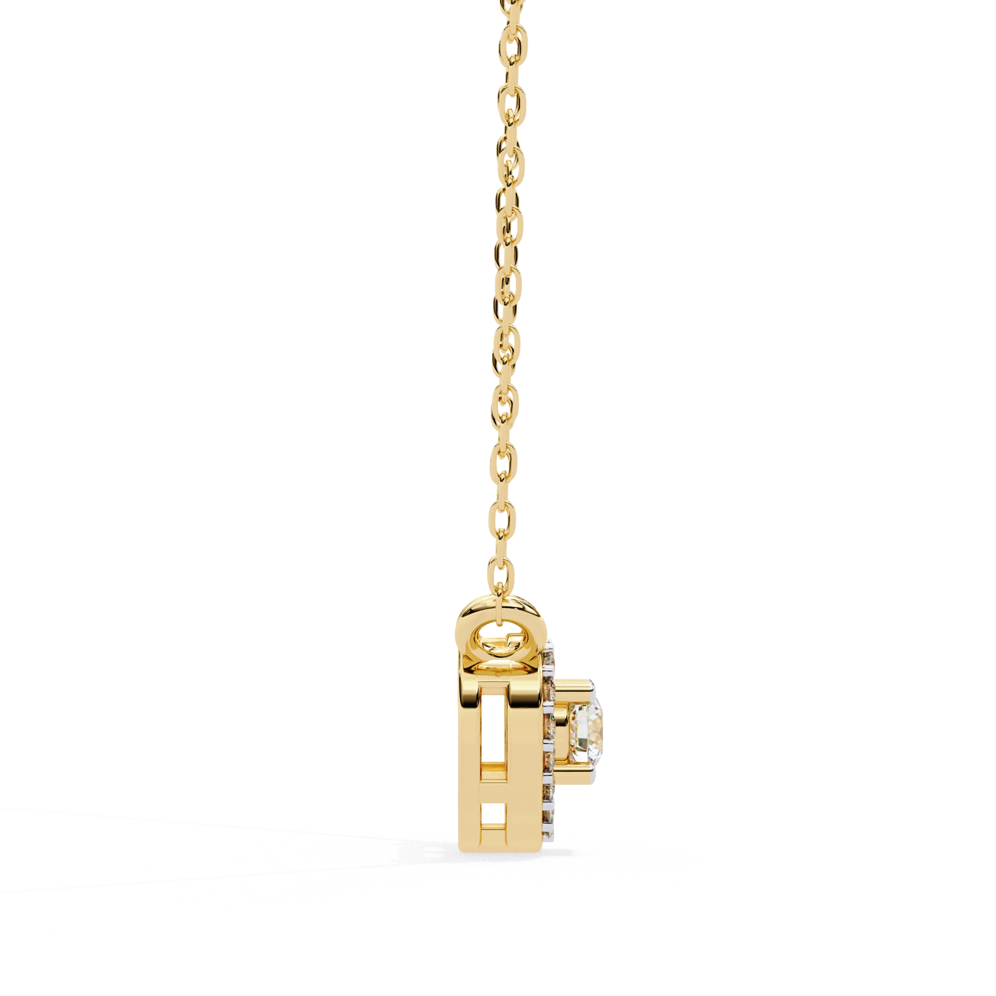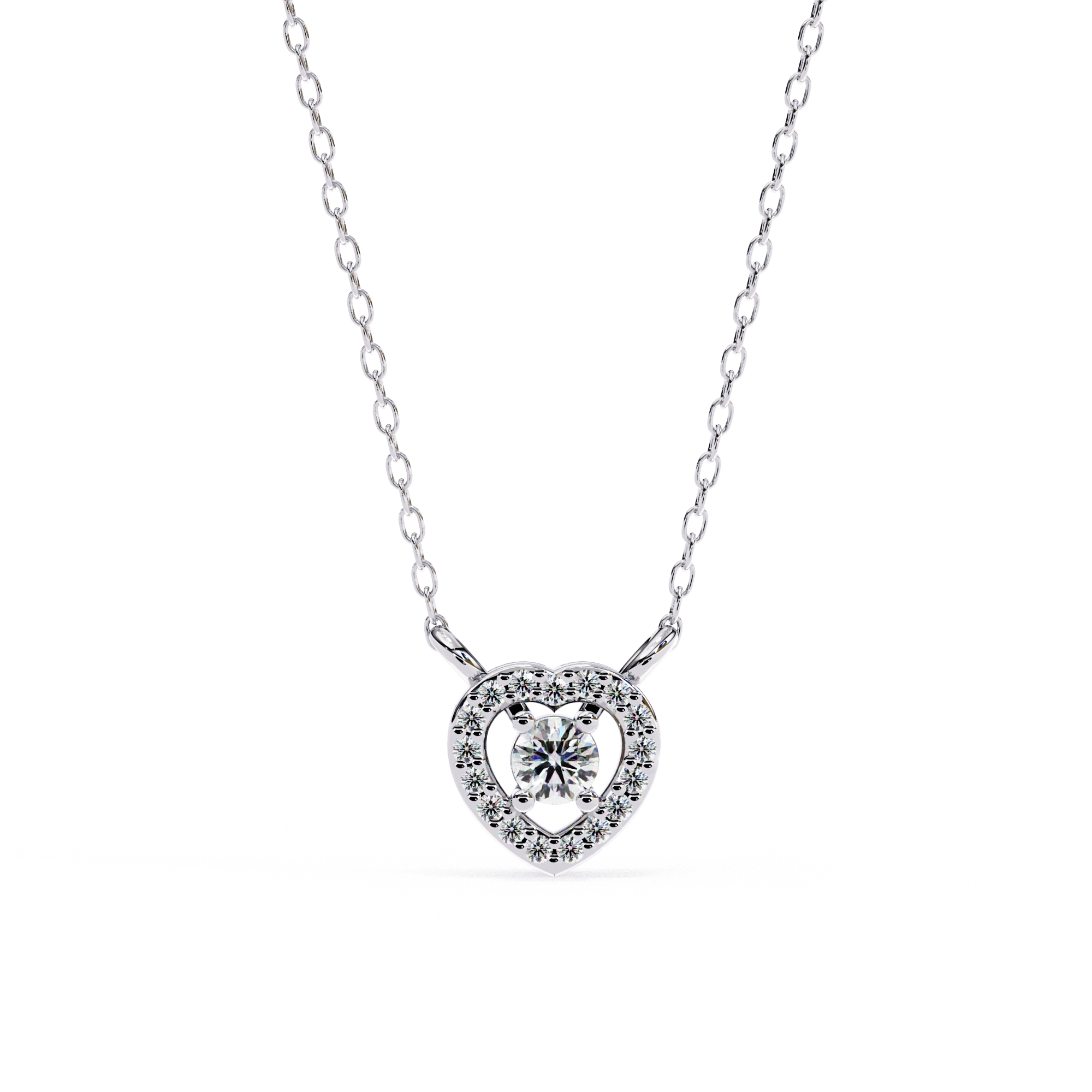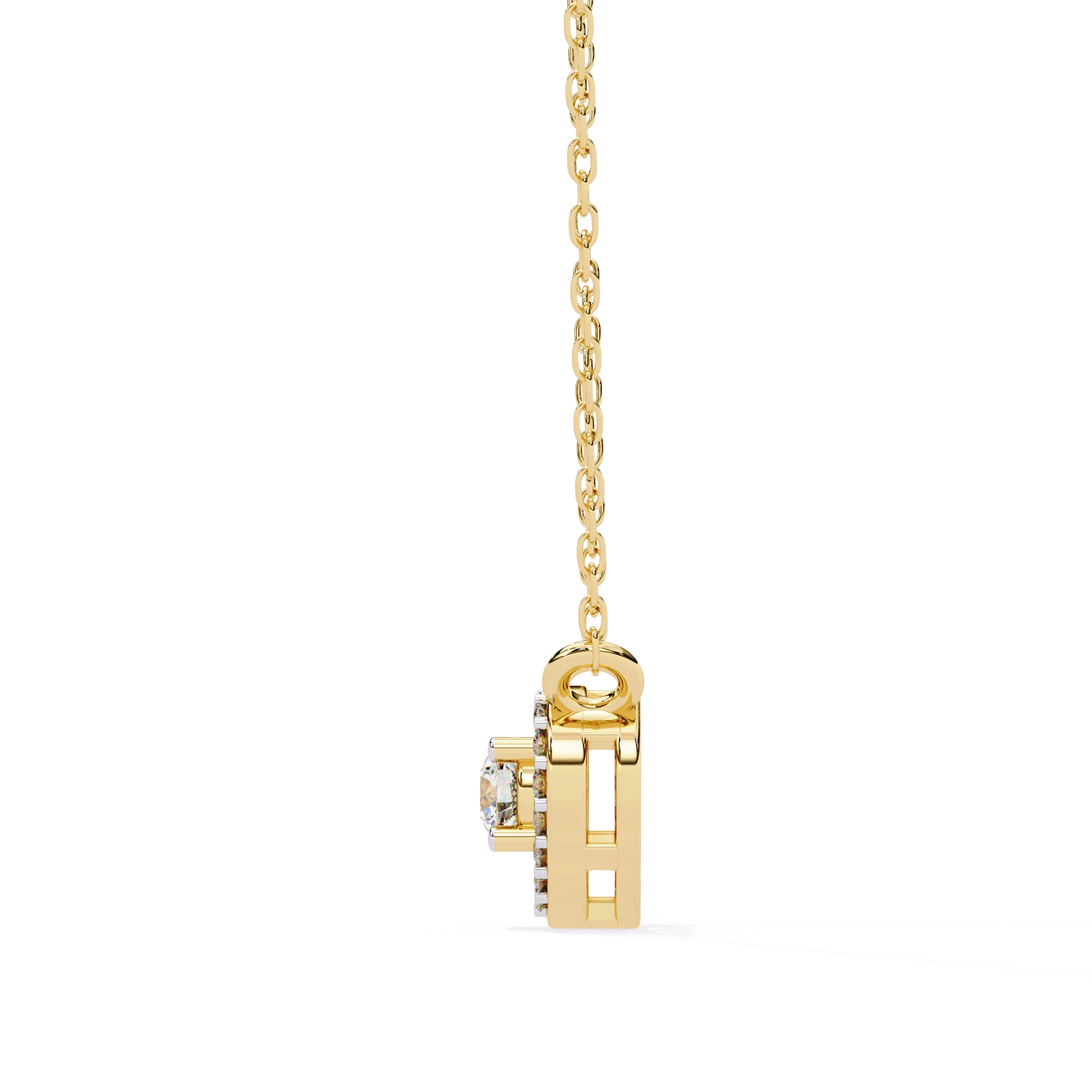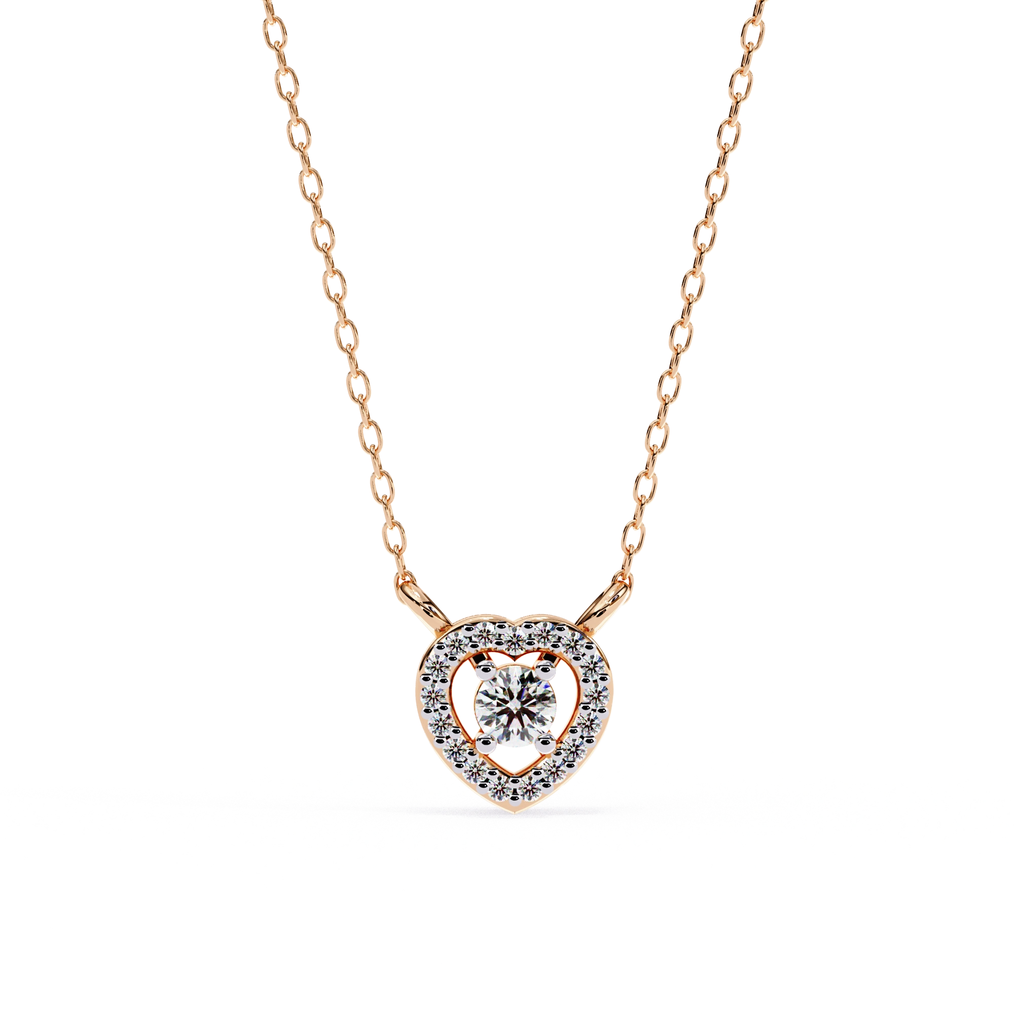 Round Lab Diamond Heart Halo Necklace In Yellow Gold